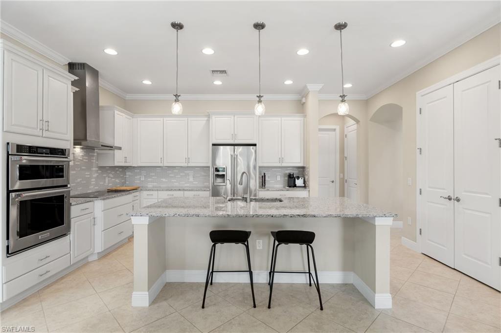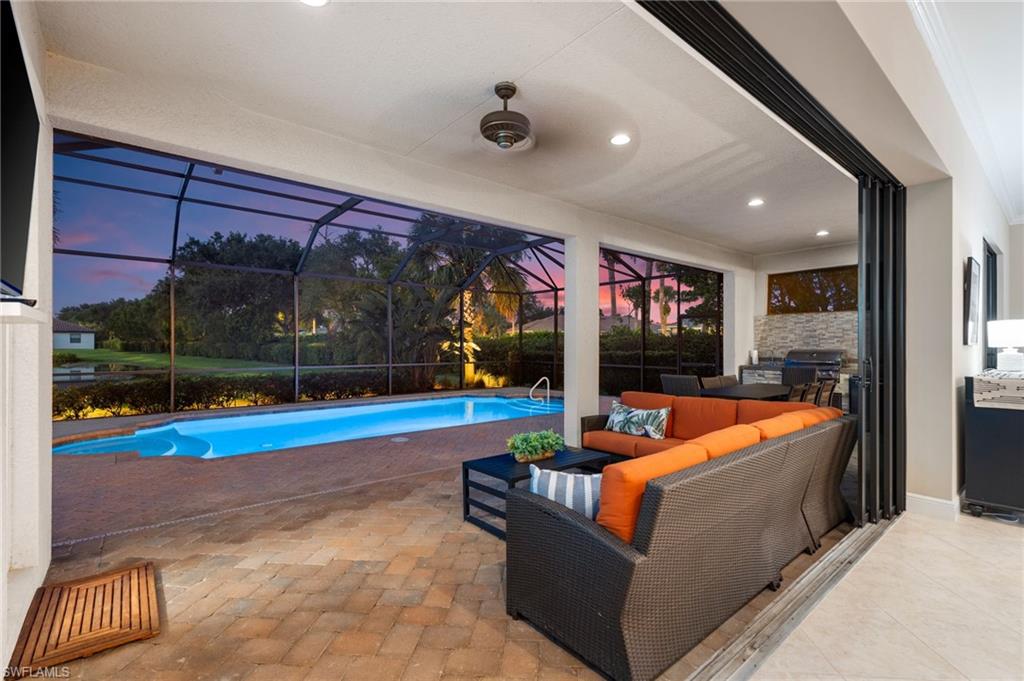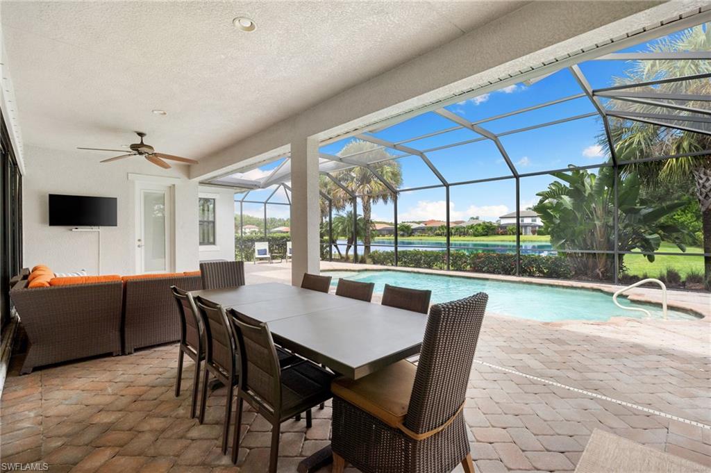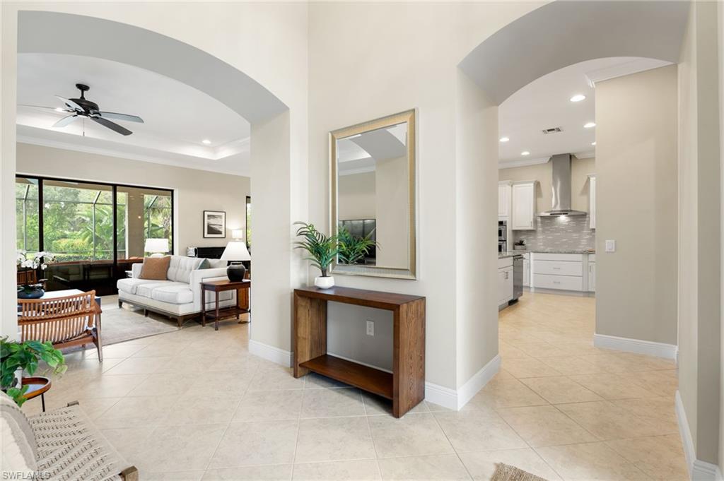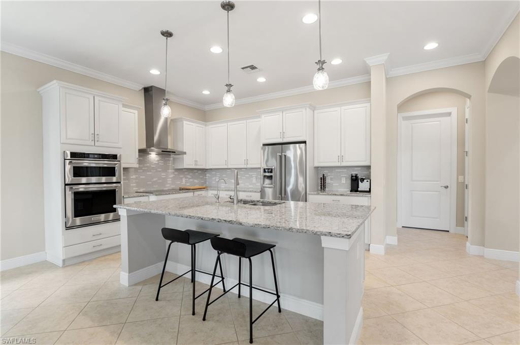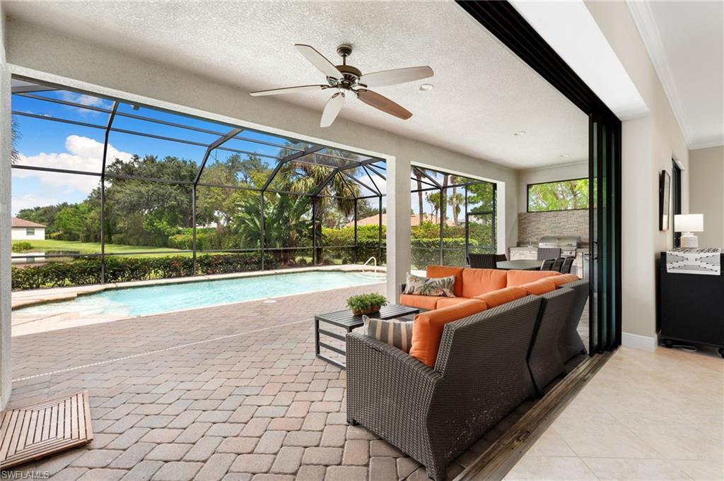 Discover this rare WCI-built Agostino masterpieceu2014one of just four ever constructed in the coveted Arborwood Preserve community. Spanning 2,782 square feet, this is the largest single-story floor plan offered in the neighborhood, thoughtfully upgraded and nestled on a premium oversized cul-de-sac lot that delivers both privacy and striking curb appeal.Step inside to an open-concept layout flooded with natural light, where every detail has been carefully considered. Three spacious bedrooms each feature private ensuite bathrooms, complemented by a convenient pool bath and powder room. A private den/office, framed by elegant glass French doors, provides a quiet sanctuary, while the expansive living room flows seamlessly into both the gourmet kitchen and the lanai beyond, creating an effortless connection between indoor and outdoor spaces.The kitchen is a showpiece, appointed with KitchenAid stainless steel appliances including an electric cooktop, French-door refrigerator, combination wall oven and microwave, and a whisper-quiet dishwasher. A generous wall pantry provides abundant storage, while the innovative Kinetico whole-home water treatment system ensures water quality throughout. The oversized two-car garage offers plenty of room for vehicles and additional storage needs.Step outside to your private oasis complete with a built-in outdoor kitchen and sparkling saltwater pool. Whether you're hosting an evening gathering or simply unwinding after a long day, this outdoor space delivers. The professionally landscaped yard creates a lush, low-maintenance backdrop, while a roll-down storm shutter at the front entrance provides added protection and peace of mind.Living in Arborwood Preserve means access to an impressive array of amenities that rival any resort. The community features a resort-style pool and bar/restaurant, a complimentary coffee room, a state-of-the-art fitness center, and a dedicated yoga studio. Residents can enjoy lighted bocce ball, pickleball, and clay tennis courts, or explore creative pursuits in the card rooms, theater, or art studio. Every day offers new opportunities to stay active, connect with neighbors, or simply relax.Location matters, and this property delivers on every front. You're just minutes from RSW International Airport, making travel effortless. Spring training facilities, pristine beaches, and world-class golf courses are all nearby, along with upscale shopping, diverse dining options, and the vibrant energy of downtown Fort Myers. Everything Southwest Florida has to offer is within easy reach.This is a rare opportunity to own one of the most desirable floor plans in Arborwood Preserve, on one of the best lots in the community.