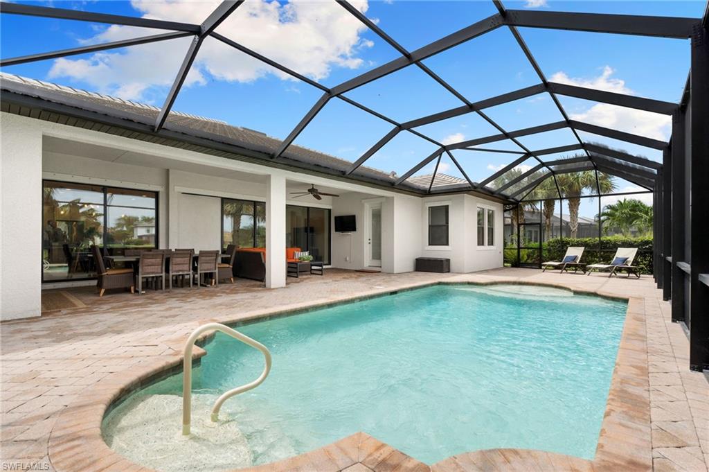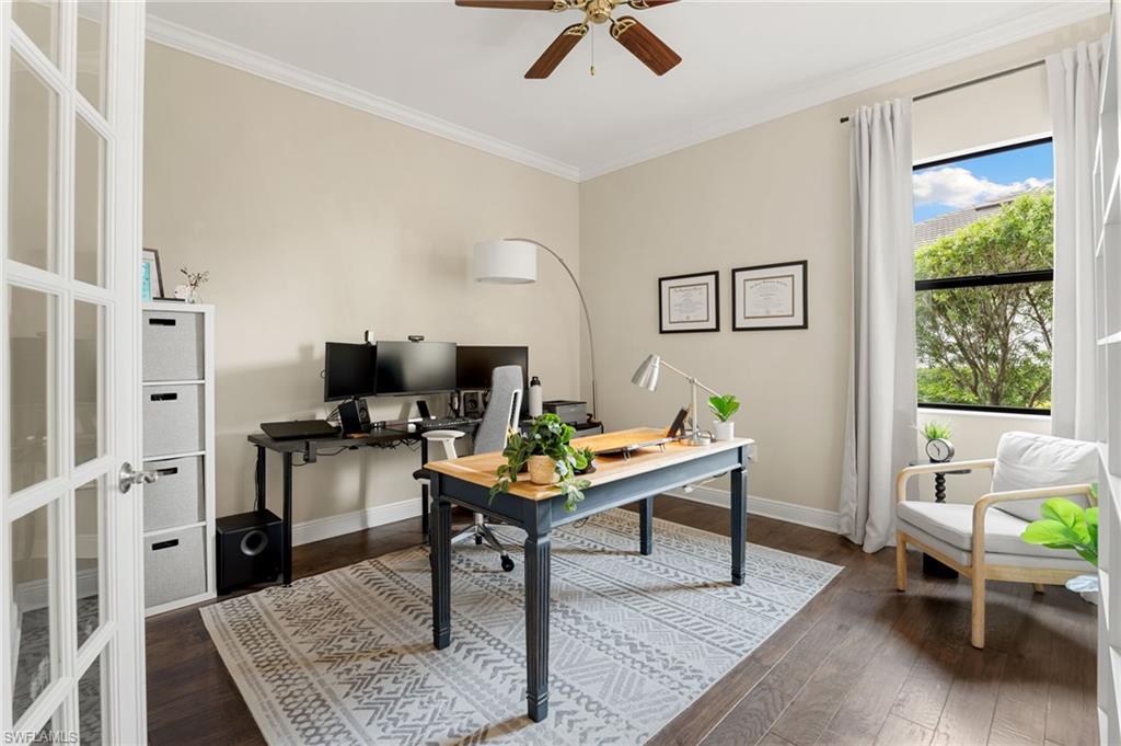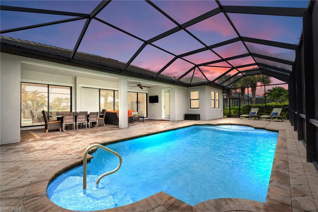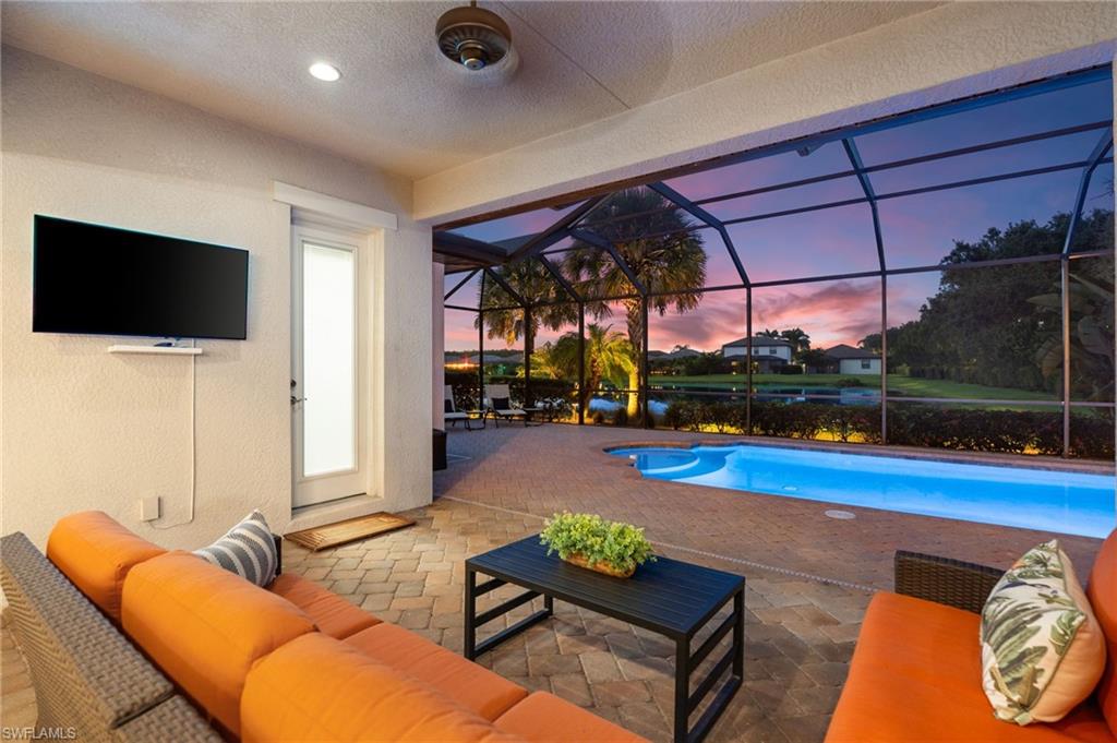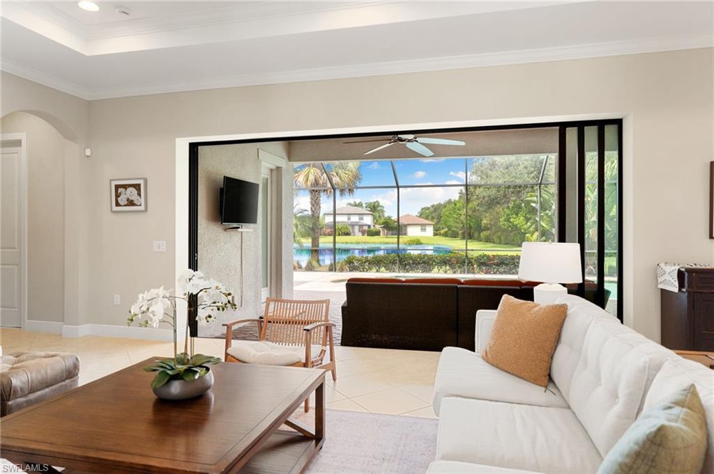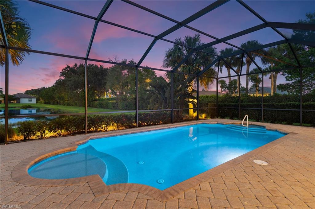 Discover this rare WCI-built Agostino masterpieceu2014one of just four ever constructed in the coveted Arborwood Preserve community. Spanning 2,782 square feet, this is the largest single-story floor plan offered in the neighborhood, thoughtfully upgraded and nestled on a premium oversized cul-de-sac lot that delivers both privacy and striking curb appeal.Step inside to an open-concept layout flooded with natural light, where every detail has been carefully considered. Three spacious bedrooms each feature private ensuite bathrooms, complemented by a convenient pool bath and powder room. A private den/office, framed by elegant glass French doors, provides a quiet sanctuary, while the expansive living room flows seamlessly into both the gourmet kitchen and the lanai beyond, creating an effortless connection between indoor and outdoor spaces.The kitchen is a showpiece, appointed with KitchenAid stainless steel appliances including an electric cooktop, French-door refrigerator, combination wall oven and microwave, and a whisper-quiet dishwasher. A generous wall pantry provides abundant storage, while the innovative Kinetico whole-home water treatment system ensures water quality throughout. The oversized two-car garage offers plenty of room for vehicles and additional storage needs.Step outside to your private oasis complete with a built-in outdoor kitchen and sparkling saltwater pool. Whether you're hosting an evening gathering or simply unwinding after a long day, this outdoor space delivers. The professionally landscaped yard creates a lush, low-maintenance backdrop, while a roll-down storm shutter at the front entrance provides added protection and peace of mind.Living in Arborwood Preserve means access to an impressive array of amenities that rival any resort. The community features a resort-style pool and bar/restaurant, a complimentary coffee room, a state-of-the-art fitness center, and a dedicated yoga studio. Residents can enjoy lighted bocce ball, pickleball, and clay tennis courts, or explore creative pursuits in the card rooms, theater, or art studio. Every day offers new opportunities to stay active, connect with neighbors, or simply relax.Location matters, and this property delivers on every front. You're just minutes from RSW International Airport, making travel effortless. Spring training facilities, pristine beaches, and world-class golf courses are all nearby, along with upscale shopping, diverse dining options, and the vibrant energy of downtown Fort Myers. Everything Southwest Florida has to offer is within easy reach.This is a rare opportunity to own one of the most desirable floor plans in Arborwood Preserve, on one of the best lots in the community.