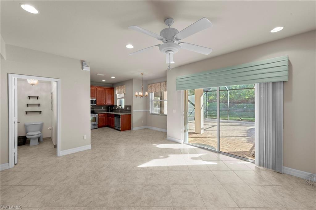 Priced to Sell! This well-maintained 3-bedroom, 2.5-bath, two-story home offers an open and functional layout perfect for todayu2019s lifestyle. The first floor features tile throughout and a spacious kitchen located at the rear of the home, complete with granite countertops, stainless steel appliances, and raised-panel cabinetry. Step outside to an oversized screened rear lanai with concrete paver flooring, overlooking a fully fenced backyardu2014ideal for pets, play, and outdoor entertaining. Upstairs youu2019ll find all three bedrooms and two full baths, including a generous primary suite with two walk-in closets and an en-suite bath featuring dual sinks plus a separate soaking tub and shower. Enjoy incredible community amenities including a resort-style pool, fitness center, clubhouse, tennis courts, and more. Conveniently located close to I-75, shopping, dining, and everything Southwest Florida has to offer. At this price, itu2019s time to MOVEu2014this home will not last long!