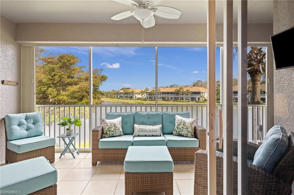 Welcome to this beautifully updated 3-bedroom, 2-bath carriage home located in the highly sought-after Colonial Country Club. This spacious upper-level residence offers 2,045 sq. ft. of light-filled living space, a 2-car garage, and peaceful lake views from the screened lanai. The home is being offered turnkey furnished, making it truly move-in ready for either full-time residents or seasonal enjoyment. Perfect location, right next to pool!The upgraded kitchen features oak cabinetry, exotic granite countertops, stainless steel appliances, and a brand-new dishwasher. The open-concept floorplan includes a large great room, dining area, and split-bedroom layout for optimal privacy. The primary suite is generously sized with a walk-in closet, dual sinks, soaking tub, and upgraded walk-in shower with seamless glass. Additional highlights include tile and carpet flooring, interior laundry, and accordion hurricane shutters for total peace of mind.Located within Jasmine Pointe neighborhood, residents enjoy access to a bundled championship golf course, pickleball, tennis, bocce, resort-style pools, clubhouse dining, fitness center, walking trails, and beautifully maintained grounds. With a newly updated roof and well-maintained exterior, this home blends comfort, convenience, and the full country club lifestyle. Fort Myers Best kept secret.