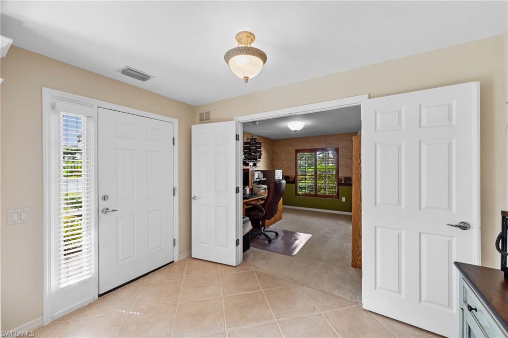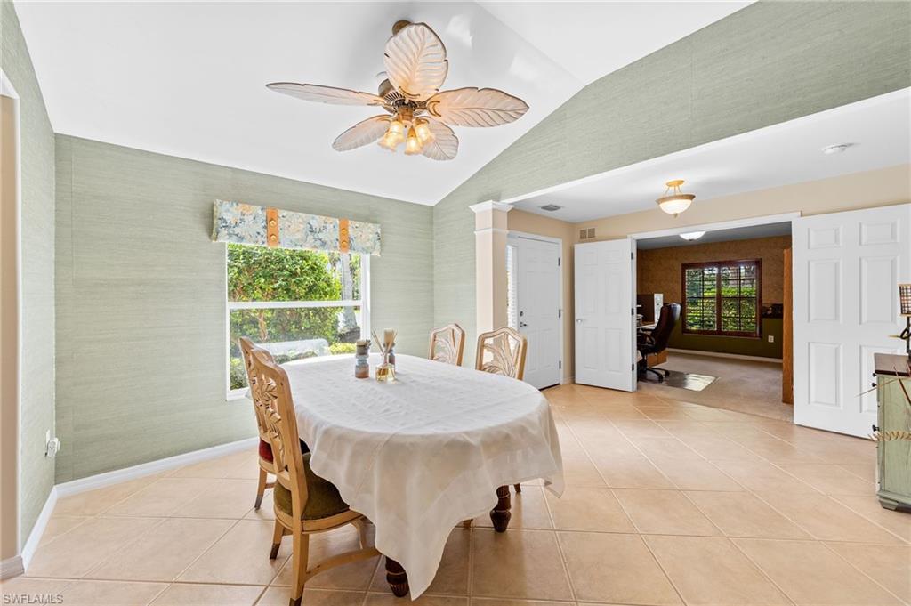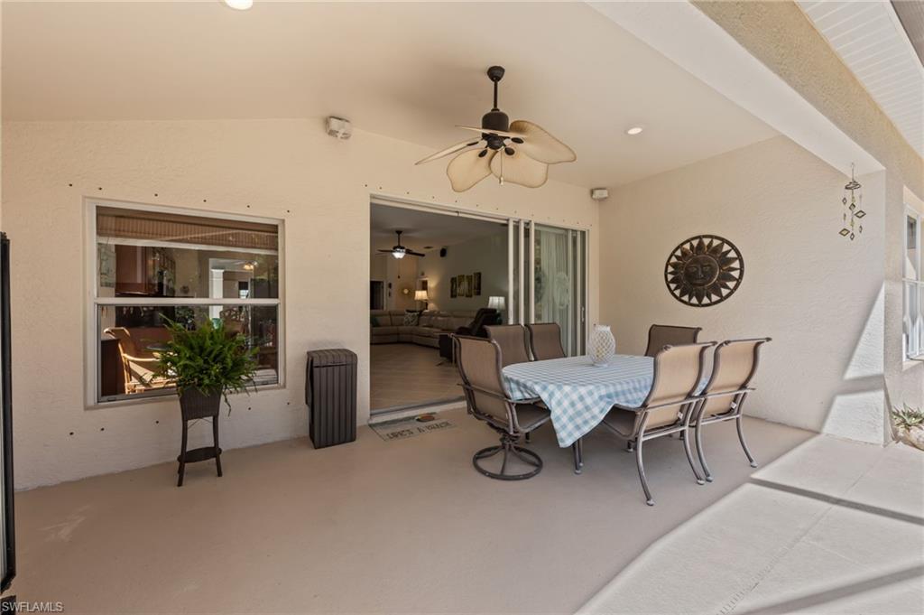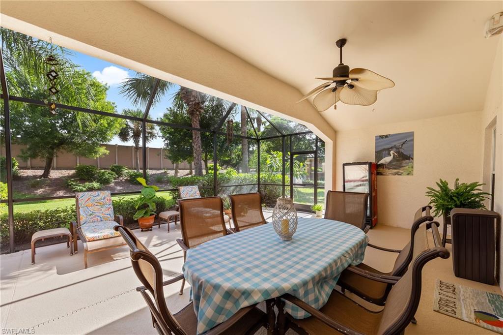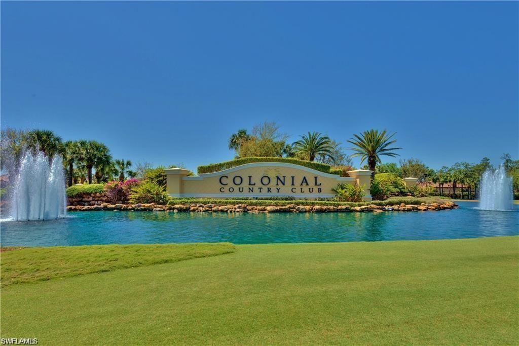 Nestled within the prestigious Colonial Country Club, this charming home offers a perfect blend of elegance meets luxury, offering resort-style living and located steps away from one of the clubs sparkling pools-just like having your own! Featuring 2 bedrooms plus a den, 2 baths and a 2-car garage, this residence sits on a tropical landscaped lot with privacy and also offers a lake view from the front. Upon entering, you'll be welcomed by custom designed interiors with a blend of tile and carpet flooring thru out. Step into the light, bright and fresh kitchen that will spark the inner chef in you. The kitchen opens to a cozy eating area and spacious living area, ideal for entertaining or relaxing with family and friends. The Primary Suite showcases a touch of elegance, comfort and luxury with a walk-in closet, double vanity basins and tile flooring. This retreat exudes comfort and relaxation with a view of the the lanai and tropical landscape. Relax on your tropical lanai with your morning coffee or evening cocktail reading a favorite story or entertaining family and friends for a delightful bbq! Spacious 2 car garage to park your cars and golf cart. A new roof and the entire association of homes are newly professionally painted on the exterior and lanai. This maintenance managed by the HOA will bring durability and peace of mind for years to come. 24/7 Guard attended gate security. Gordon Lewis-designed, newly renovated, 18-hole golf course, is fun, yet challenging to the most skilled golfer and on a pay-as-you-play basis with this home. Social membership included. Colonial offers amenities such as 8 sparkling pools, walking trails in preserve and on sidewalks, tennis, pickle ball, bocce, and state of the art fitness center, aerobics studio, water aerobics and more!! The community is renowned for its vibrant and friendly atmosphere, with opportunities to participate in social activities, tournaments and more. Club membership is private and includes access to the formal dining room and Sunset Grille, both offering indoor and outdoor dining options. Colonial Country Club has garnered several prestigious accolades, including the Distinguished Club Award, placing it among the top 4% of clubs globally for excellence in service, facilities, and member experience. It's also recognized as one of America's Healthiest Clubs and holds top ranks for exceptional dining and world-class racquet facilities. Conveniently located near RSW airport, I-75, restaurants, entertainment venues, medical facilities, and minutes to all the world-class beaches, this property offers the pinnacle of resort club lifestyle living. Whether you're seeking an active community or a tranquil retreat, Colonial Country Club exceeds expectations as a premier destination. Come see it, fall in love and make it your new home today! Start living the dream of the southwest Florida lifestyle and live where everyday feels like a vacation!