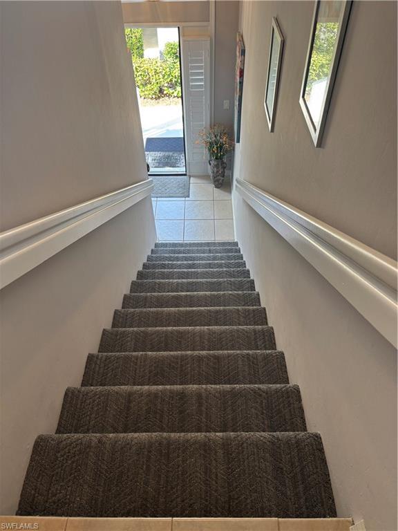 WELCOME HOME! ENJOY SPECTACULAR LAKE & SUNRISE VIEWS from your Screened Lanai. This beautifully maintained 2nd floor home consists of 2 Bedrooms, 2 Baths, a covered carport & Storage unit. This Great Room floor plan has soaring ceilings and split bedrooms. The Master Bath has been totally renovated with quartz counters, cabinetry, walk-in shower, lighting, mirrors and tile floor. There is tile throughout the Living areas as well as the Lanai which has electric storm shutters. There are Accordion Hurricane Shutters on all windows. The windowed Eat-In kitchen is spacious and bright and has a beautiful quartz counter top, backsplash, lighting above and below the cabinets for a lovely effect. There are plantation shutters on all windows. There's a newer Air Conditioner, Hot Water Heater, Refrigerator, Stove and Washer. Air ducts were recently cleaned. NO FLOOD INSURANCE REQUIRED. Enjoy this amenity rich gated community of Colonial Country Club that has a fun Social Program for Everyone including a Neighborhood Pool and 2 Community Pools, Pickleball and Bocce Ball, Tennis, recently renovated Clubhouse with Happy Hours & Live Music with Formal Dining and a Sunset Grille with a Sports Bar, Acres of Preserve & Walking Trails, a State of the Art Fitness Center (currently being renovated) and pay-as-you-play Championship Golf Course that has been recently renovated and will be completed this month. Colonial is near I-75, SWFL Int'l Airport, Red Sox & Twins Spring Training Stadiums, Restaurants, Shopping Malls, Entertainment & the Beautiful Beaches of Sanibel & Fort Myers. RELAX & ENJOY THE FLORIDA LIFESTYLE !!!