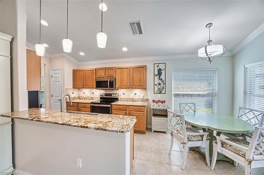 You will not be disappointed in this beautiful TURNKEY twin villa in the prestigious Colonial County Club! This stunning home boasts luxurious upgrades throughout, including granite counters, stainless steel appliances, and new ceiling fans. The house has been impeccably maintained and cared for, ensuring a move-in ready experience for the new owners. Step outside onto the extended lanai, featuring new porcelain tiles and a peaceful view of the lush preserve. With new hurricane impact windows and Aramid Hurricane screens, you can rest easy knowing your home is protected during storm season. The remodeled bathrooms offer a spa-like retreat, while the new roof, gutters, air conditioner, and hot water heater provide peace of mind for years to come. The completely remodeled laundry room and new garage floor with storage system add convenience and functionality to this already impressive property. Whether you're relaxing in the spacious living areas or entertaining guests in the outdoor oasis, this villa offers the perfect blend of luxury and comfort. Whether you're looking for a peaceful retreat or a vibrant community to socialize and stay active, this home has it all. The award-winning Colonial Country Club offers resort-style living with amenities like pay as you play golf, tennis, pickleball, a fitness center, miles of walking trails and bocce ball. The on-site restaurant and bar offers a place to socialize with friends and neighbors. Don't miss your chance to own this exquisite home in Colonial Country Club.