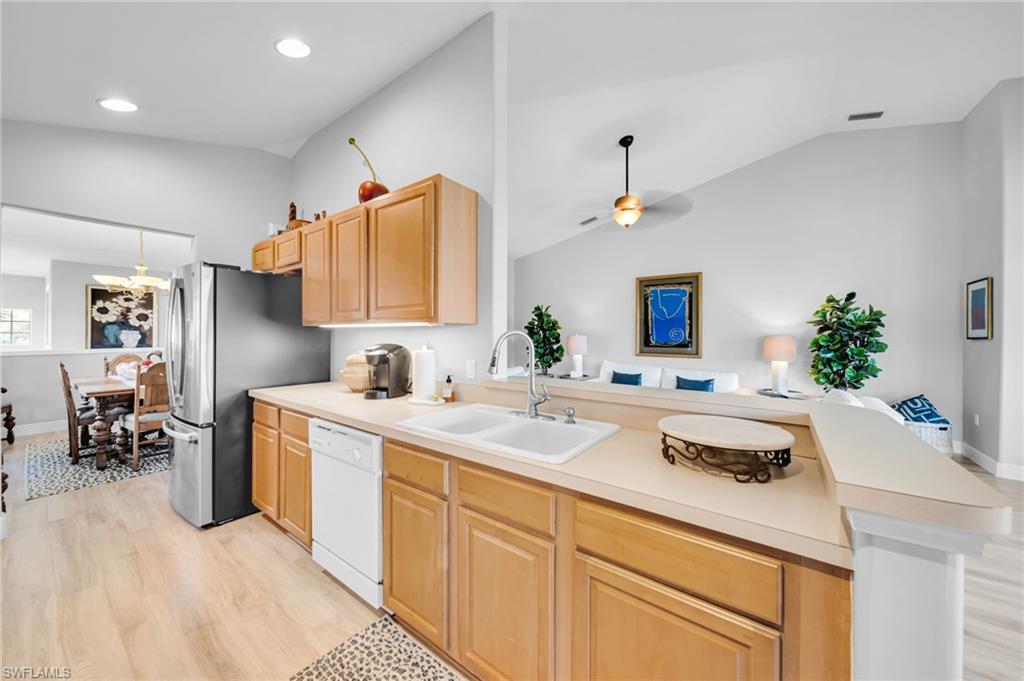Impeccably Renovated End-Unit Condo with Expansive Lake Views and Impact Glass Sliding Doors.This beautifully updated 2-Bedroom Plus Den, 2-Bath End-Unit Condo offers 1,797 sq. ft. of light-filled living space with sweeping lake views from nearly every room. Move-in ready and designed for both comfort and style, the home features volume ceilings, new luxury Laminate Wood flooring, fresh interior paint, and tall hurricane-rated sliding glass doors and windows that bring in abundant natural light. The open-concept layout includes a spacious living and dining area that flows seamlessly onto the west-facing screened lanai, offering breathtaking panoramic lake views to the north and south, an ideal setting for enjoying tranquil sunsets.The primary suite is generously sized with huge water views, a walk-in closet, and an updated en-suite bath featuring a glass-enclosed shower. The Split guest bedroom and full guest bath provide privacy and comfort for visitors. The flexible den with French doors can easily serve as a third bedroom, home office, or hobby space.Additional highlights include: *Extended 1-car garage for added storage and convenience, *Formal dining area just off the kitchen, *Open floor plan ideal for everyday living and entertaining, *Nearly $50,000 in recent improvements. Located within Colonial Country Club, a highly sought-after gated community offering an abundance of upscale amenities: *A championship par-72 golf course by Gordon Lewis (multi-million dollar redesign underway; expected completion December 2025) *On-site dining led by Executive Chef Albert Wallace with a grand dining room for up to 225 guests *Resort-style pool & spa, plus massage and esthetics services *8 lighted Har-Tru tennis courts, pickleball, and bocce ball complex *Fully equipped fitness center with professional staff *Scenic walking trails, parks, and so much more!Ideally located just minutes from Downtown Fort Myers, shopping, dining, entertainment, and RSW International Airport, this home offers the perfect blend of luxury, leisure, and location. Schedule your private tour today and experience exceptional lakefront living in one of Southwest Floridau2019s premier communities!