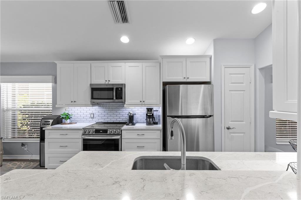 WOW FACTOR!! Coastal elegance meets luxury living in Colonial Country Club. Nestled within the prestigious, gated community of Colonial Country Club, this beautifully maintained 3-bedroom residence with den/flex space and 2 full baths offers an exceptional blend of comfort, elegance, and resort-style living. The thoughtfully designed split-bedroom floorplan features volume and vaulted ceilings, abundant natural light, and a seamless flow ideal for both everyday living and entertaining. At the heart of the home, is the completely redesigned chef's kitchen which offers ample custom cabinetry, pantry, breakfast bar, and kitchen dining area (currently used as a seating/reading nook) which graciously opens to the spacious living and formal dining areas, all framed by tranquil preserve views. The primary suite is a private retreat with dual sinks, walk-in shower, generous, custom designed closet space, and peaceful views of the sparkling pool and preserve. The second bedroom is perfect and private for your guests. The third bedroom is light and bright offering the flex of being a bedroom, den or media/hobby room. Step outside to your screened lanai and private heated pool, creating a serene, tropical setting perfect for year-round enjoyment. Whether hosting guests or relaxing poolside, this outdoor space delivers the ultimate Southwest Florida lifestyle. A newer roof, pool mechanicals, appliances, and mechanicals of the home, along with a storm screen shutter and accordion hurricane shutters will provide peace of mind for years to come. Colonial Country Club offers an unparalleled amenity package including a newly renovated Gordon Lewisu2013designed championship golf course, tennis, pickleball, bocce, a state-of-the-art fitness center, full-service spa, scenic walking and biking trails, and multiple resort-style pools. Residents enjoy dining at the Sunset Grille with indoor and outdoor seating, along with a vibrant social calendar featuring live music, themed events, clubs, and activities. Recognized as one of Americau2019s Healthiest Clubs, Colonial Country Club has earned national accolades for excellence in hospitality, culinary offerings, racquet sports, and community lifestyle, including the 2024 International Wine Society Merit Award. Conveniently located near world-class beaches, shopping, dining, medical facilities, RSW International Airport, and spring training stadiums, this home presents a rare opportunity to experience luxury living where every day feels like a vacation.