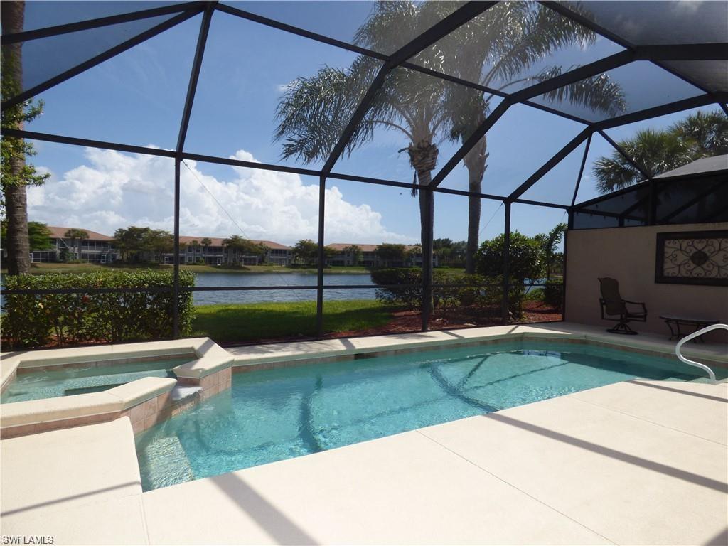 AVAILABLE is this gorgeous single family pool home with spa. This 2 bedroom, 2 bath with den home is tastefully decorated and includes GOLF MEMBERSHIP. This home is turnkey, so just bring your personal items and enjoy the relaxing lake view off the large lanai, the lanai has an electric shade shutter so you can enjoy your drink or coffee without worrying about the weather. Colonial Country Club offers many amenities including but not limited to an 18 hold championship golf course, tennis, bocce ball, pickleball, a lap pool, fitness center, fine and casual dining. Close to shopping and the airport.