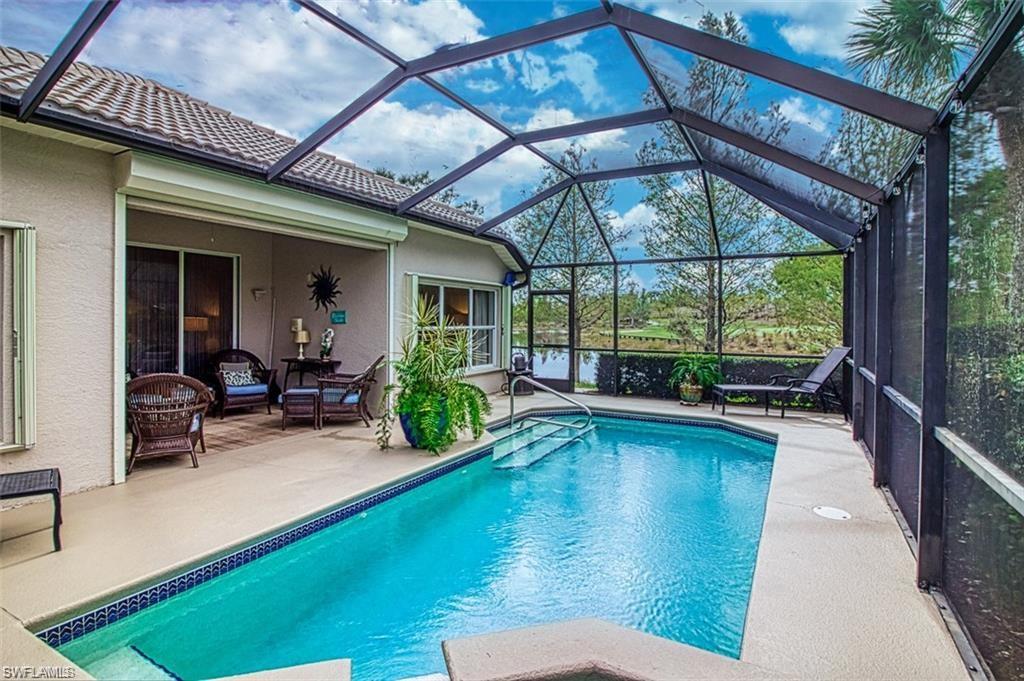 Absolutely gorgeous furnished private pool home with 3 bedrooms, two baths, two car garage, and overlooks the 7th hole of the Golf Course. Golf Membership included with this home. Colonial has many amenities including Clubhouse with Casual and Formal Dining. Tennis, Walking Trails, Pickle Ball, Bocce, and so much more. Close to shopping, restaurants and the airport.