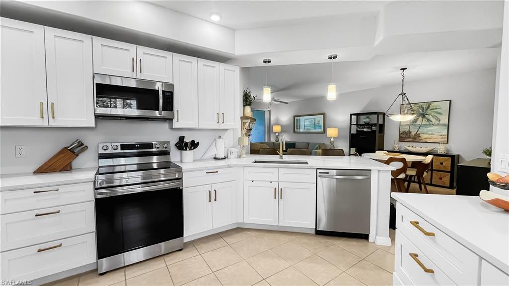 Welcome to this beautiful first floor condo overlooking a fabulous view of the Lake. This condominium has a gorgeous updated kitchen which features an ate in kitchen area, all new cabinets, stunning quartz counter tops, with a huge island and top the line stainless steel appliances.A spacious great room which is wonderful for entertaining your guest and family. Also includes a formal dining room. The owners suite has beautiful view of the lake to wake up to every morning. A large bathroom with an all white tile walk in shower a spacious walk-in closet,vanity with dual sinks and large mirror. A split floor plan with a quest room and full bath. Come enjoy the Florida lifestyle!