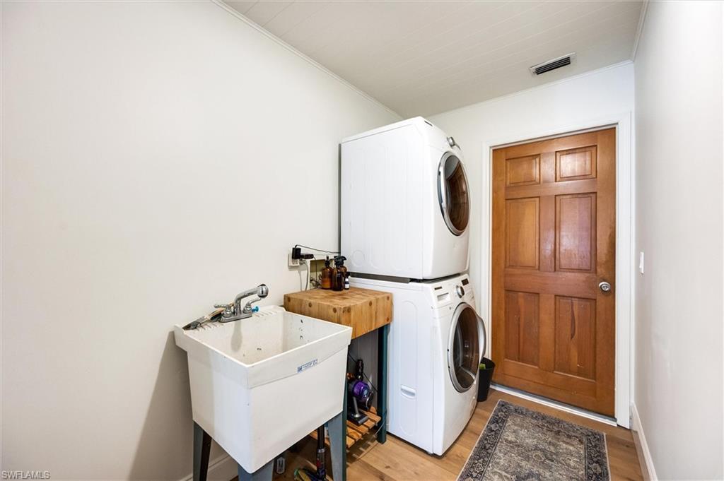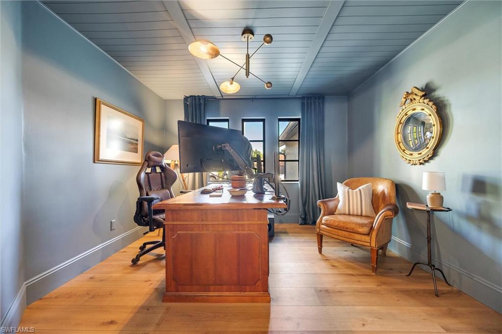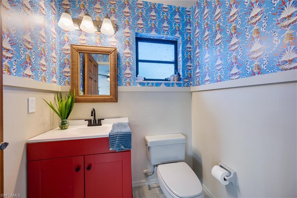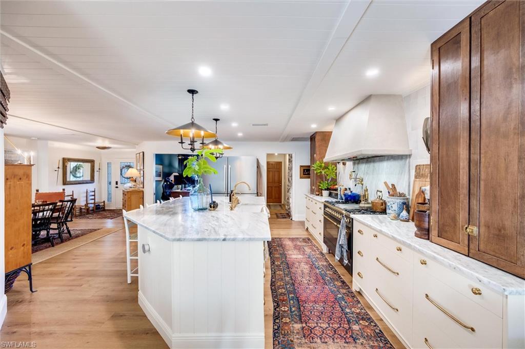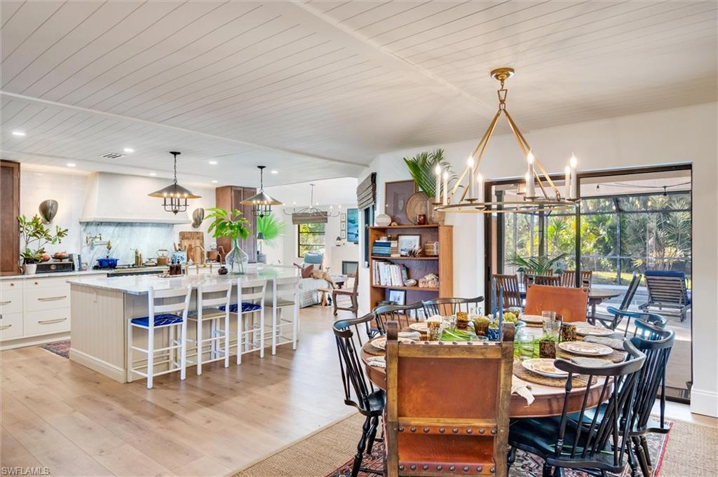 Welcome to this truly one-of-a-kind residence in Eagle Ridge. This thoughtfully renovated 3-bedroom plus den, 3-bath home showcases curated finishes and exceptional craftsmanship throughout. The stunning kitchen is the centerpiece, featuring dolomite countertops, a large island, and a porcelain farmhouse sink with a walnut drip edge. Design-forward details include an unlacquered brass faucet, brass cabinet pulls, and a paneled dishwasher, along with a reverse osmosis water system at the sink. Large, wired kitchen towers function as appliance garages while also providing additional storage, keeping countertops free and clear of everyday appliances. Built for serious cooking and entertaining, the kitchen offers dual fridge/freezers, a large dual-fuel range (electric oven and gas cooktop), double oven, pot filler, and a substantial hood vent. Two 40-gallon propane tanks service the gas cooktop. The living area features a built-in electric fireplace, creating a warm and inviting atmosphere. The primary suite serves as a private retreat and includes a secluded outdoor space just off the bathroomu2014ideal for a tranquil green space. Luxury vinyl plank flooring runs seamlessly across the entire home, complemented by tongue-and-groove ceilings that add warmth and personality to every room. Handcrafted bamboo Roman shades are installed throughout the house and will stay with the property.Two additional guest bedrooms provide flexible living options, with one currently set up as a nursery. A well-appointed guest bathroom serves these rooms, while the den offers the perfect space for a home office, media room, or additional flex space. Outdoor living is just as impressive, with a pool, outdoor shower with hot water, and plenty of room for entertaining. A stylish pool bath with tasteful wallpaper adds plenty of personality. The property backs up to a nature preserve, enhancing privacy and tranquility and offering a peaceful setting for birdwatching.Located in the established Eagle Ridge community, residents enjoy access to a public golf course with optional membership. HOA fees are only $673 per year and include high-speed fiber-optic internet. This is a truly unique home with a level of detail and finish thatu2019s hard to find in Fort Myers.
