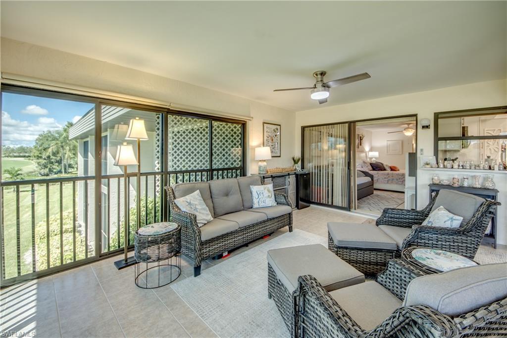 Welcome to The Fairways at Eagle Ridge! This beautifully updated 2nd floor, 2 bed, 2 bath condo offers a bright, open living space with serene fairway views. Enjoy your morning coffee from the enclosed screened lanai with acrylic sliders, perfect for year-round use.Recent upgrades include:Modern kitchen with white cabinetry, ample storage, and pull-out drawersCustom tile shower in guest bathBrand-new A/C (2024)New Roof-2022Community improvements: freshly painted buildings and newly sealed paved parking lotThis well-maintained community features a resort-style pool and cabana, clubhouse, BBQ/picnic area, bike storage, and scenic walking paths with charming streetlights. Optional golf course membership available at Eagle Ridge Golf Club.Prime location with convenient access to RSW-Southwest Florida international Airport, near shopping, dining, entertainment, and major roadwaysu2014offering the perfect blend of peaceful living and convenience.Donu2019t miss this opportunity to own in one of Fort Myersu2019 most desirable communities!