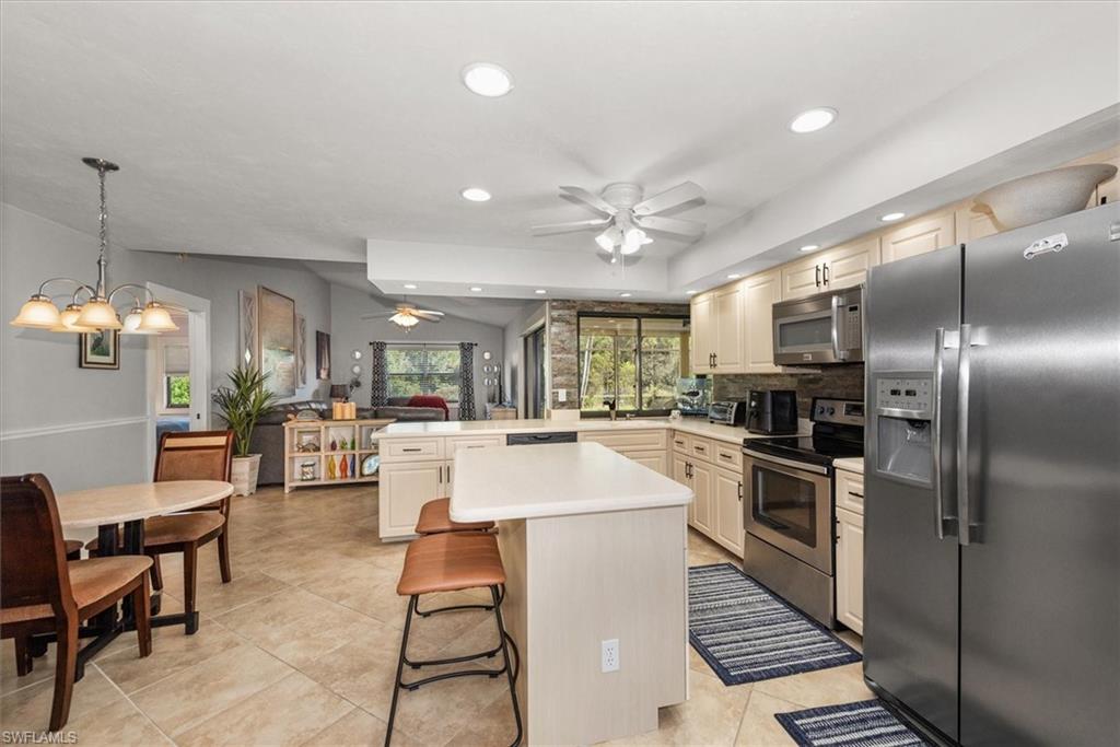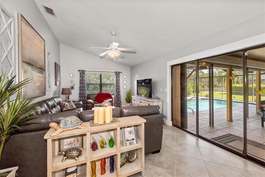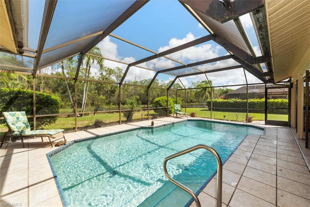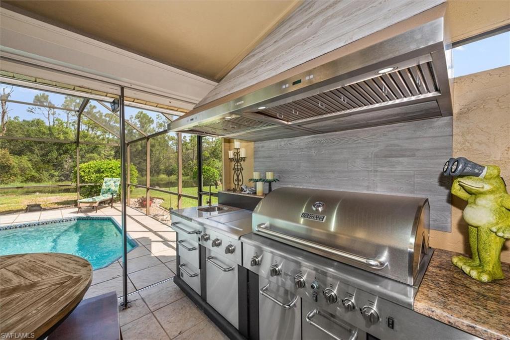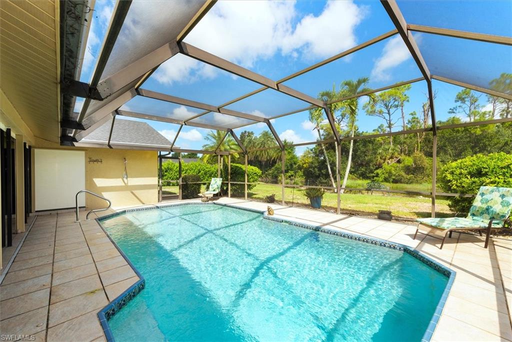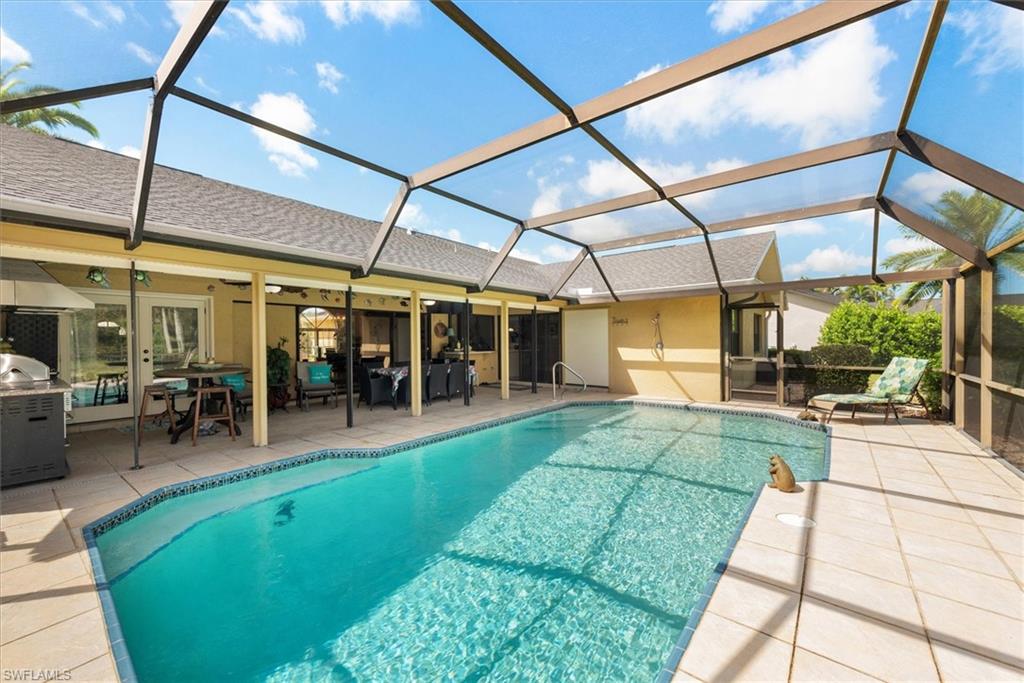 MUST SEE! Wonderful opportunity to live in popular Eagle Ridge being offered Turnkey! 3/2 pool home has been carefully updated and tastefully decorated. Nice pool area that includes newer outdoor kitchen! Peaceful view including lake and wooded area. It also provides extra under truss space in pool area with roll down storm shutters. Almost 1/3 acre lot. Public golf course available to join, not bundled. Exceptional price and ANNUAL DUES only $673! This home is in the sought after Daniels Corridor location between the Ball Parks and Slough Preserve. Come see why this is one of the most popular neighborhoods in Fort Myers!