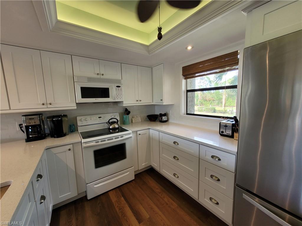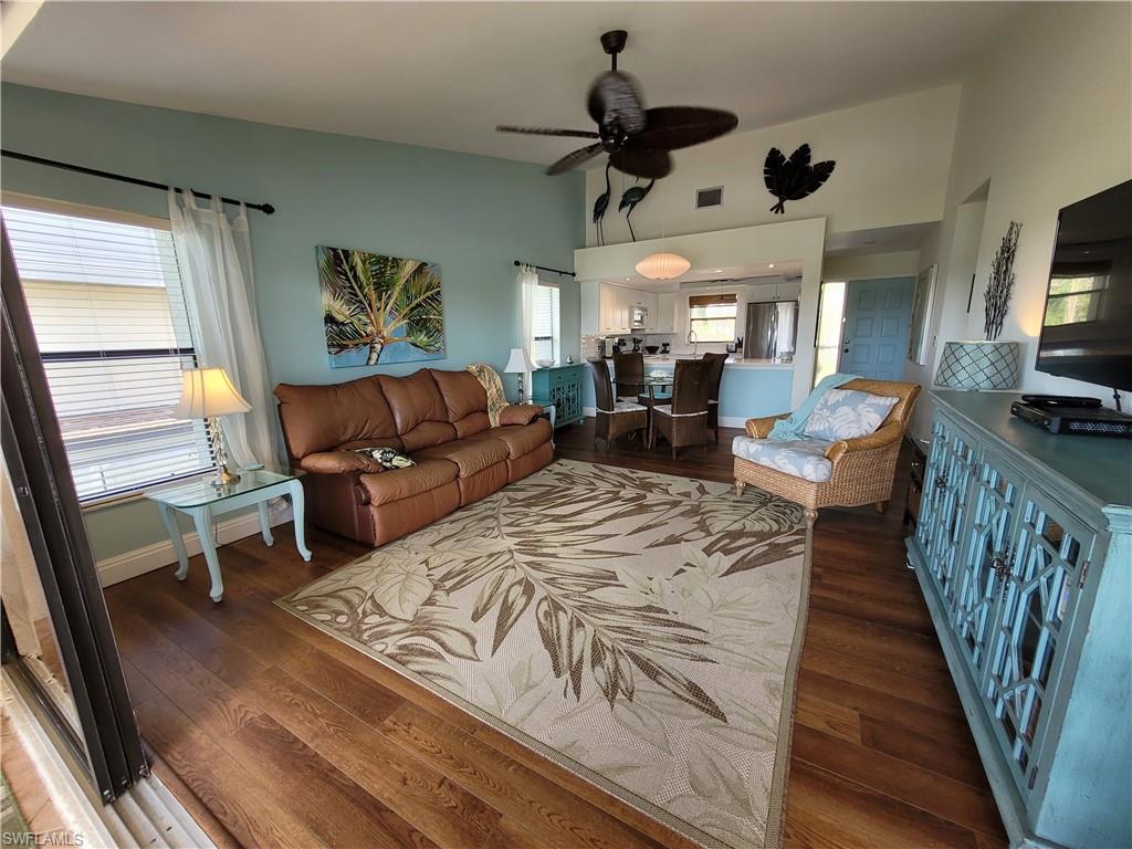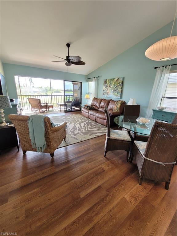Welcome to Paradise and this Breathtaking View! It's panoramic view of the golf course and lake with beautiful water feature allows you to enjoy the Sunrise and the Sunset. The tiled lanai runs the entire length of the condo and you can enter from the living room, and both bedrooms. This second floor end unit gives you extra windows to let in extra light. This large two bedroom 2 bath features wood like flooring, an open floor plan, light colors, and lots of windows and sliding doors that run the length of each rooms lets you enjoy the beauty that surrounds you. The wonderful birds and other wildlife will perform shows for you each day. You could not find a better vacation spot and you will see why more and more people are falling in love with Florida. You will appreciate the warm weather, the warmth of the people here and the amazing beauty that nature provides. We all deserve a Little Piece of Paradise and you have found yours. The community is located in South Fort Myers with easy access to Interstate 75, the airport, Red Sox and Twins Stadiums, shopping, dining and FGCU and FSW colleges. Available beginning December 16, 2022. Call for more information or to see.
