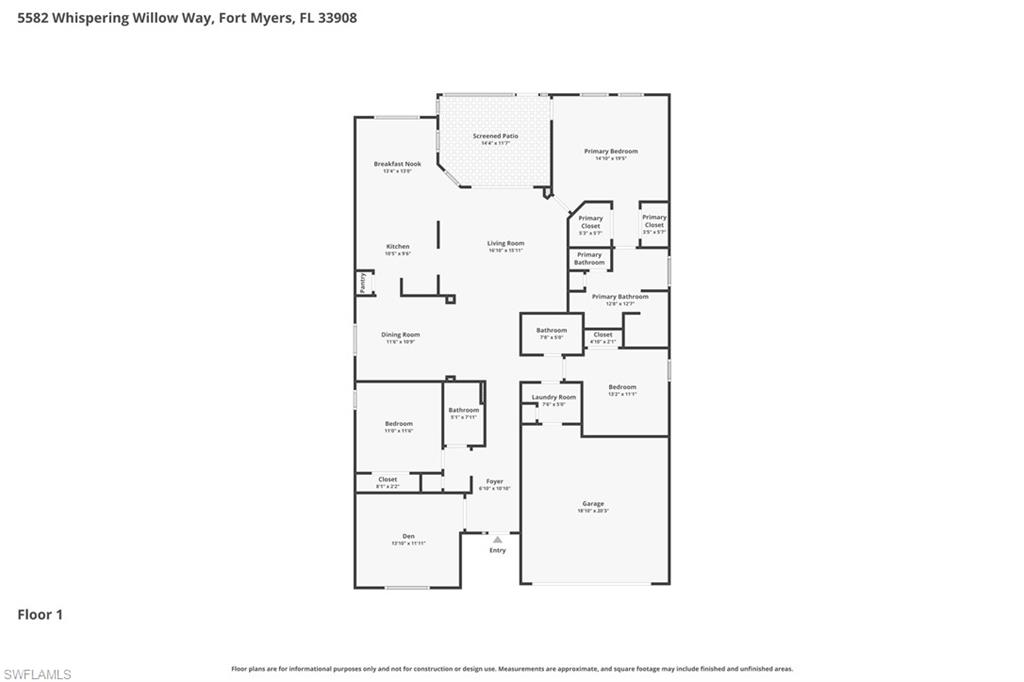 Welcome to this beautifully maintained home in the highly desirable Emerson Square community, ideally located in South Fort Myers with close proximity to RSW International Airport, premier shopping, dining, FGCU, Gulf Coast Town Center, Coconut Point, and easy access to I-75. Situated on a spacious corner lot with a long paver driveway and mature tropical landscaping, this property offers outstanding curb appeal and added privacy. Inside, youu2019ll find a bright, open floor plan with soaring ceilings and abundant natural light that creates an inviting atmosphere throughout the main living areas. The newly remodeled kitchen is a standout feature, showcasing updated cabinetry, quartzite countertops, modern appliances, ample storage, and generous prep spaceu2014perfect for everyday living and entertaining. The kitchen flows seamlessly into the living and dining areas, enhancing the homeu2019s open-concept design. The spacious primary suite serves as a comfortable retreat, complete with generous closet space and a well-appointed bath. In addition to the three full bedrooms, a separate den provides the flexible space todayu2019s buyers are looking foru2014perfect for a home office, guest room, media space, or potential fourth bedroom. Step outside to enjoy the private screened lanai, an ideal space for relaxing with morning coffee or unwinding in the evening while enjoying peaceful surroundings. This home also features tile flooring throughout the main living areas, LVP flooring in the bedrooms, an attached two-car garage, and numerous upgrades and improvements throughout. The AC system was upgraded in 2023, providing added comfort and efficiency, along with many additional enhancements that make this home move-in ready. Combining location, functionality, and thoughtful updates, this Emerson Square residence offers the perfect blend of convenience and Florida lifestyle living. Schedule your private showing today.