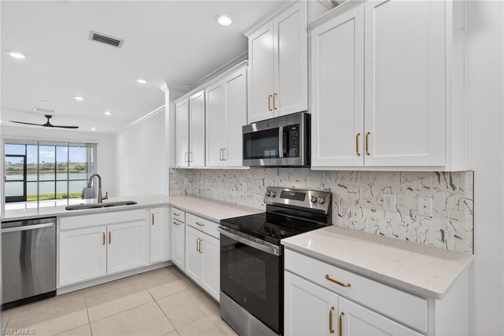 Beautiful 3 BEDROOM, 2 BATHROOM, GROUND FLOOR unit with a panoramic LAKE VIEW, located in the highly sought after community of Esplanade Lake Club. Enjoy LUXURY living in this open-layout design, including a large eat-in kitchen with breakfast nook. u00a0Enjoy the comforts of a Newer Unit, with sweeping views of the enormous, lush lake and ample natural light. u00a0Multiple upgrades, including crown molding, additional ceiling fans and 3rdu00a0BEDROOM with glass French doors and closet (not featured in any other unit in this community). Enjoy your favorite book or morning coffee on the front porch or spacious screened lanai. u00a0This unit includes a detached one car garage that offers private storage and parking, as well as the additional convenience of a private driveway. Take advantage of the exclusive amenities at Esplanade Lake Club, one of the most sought-after new-build communities in Southwest Florida, on the shores of the prestigious Lake Como. Unwind at the community amenity center, with a resort-style pool, outdoor Bahama Bar and Grill restaurant, a MASSAGE TREATMENT ROOM for spa services, sports courts featuring tennis, pickleball, and bocce ball, walking trails, pet parks, kayak and paddleboard launch, and space for residents to utilize for socializing, gaming and more! All of this is within the comfort and privacy of a gated, guarded, community. Minutes away from the SWFL International Airport, Gulf Coast Town Center, beaches, hiking trails, spring training sites, area hospitals and much more! COME ENJOY THIS BOATERSu2019 COMMUNITY & Live the FLORIDA RESORT LIFESTYLE.u00a0 u201cSome photos have been virtually stagedu201d