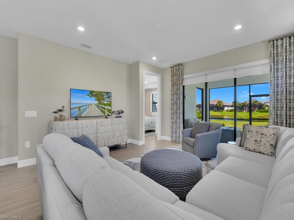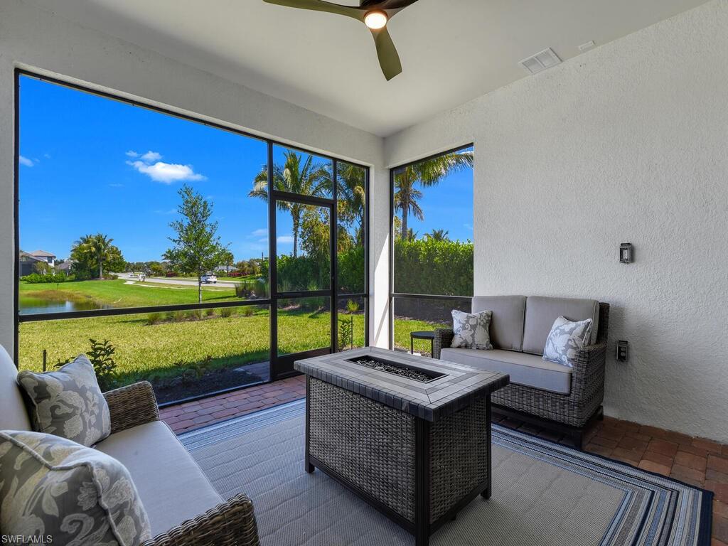 SHORT TERM RENTAL AVAILABLE MAY 1ST - NOVEMBER 30TH 2026 @ $3,200/MONTH. AVAILABLE FOR SEASON 2027 @ $7,500/MONTH (DEC THROUGH APRIL 2027). Welcome to your home away from home, in the beautiful Esplanade Lake Club! This spacious, thoughtfully designed 2-bedroom + den, 2-bathroom home features a cozy, screened-in lanai that overlooks the lake, with your very own fire pitu2014perfect for relaxing and and winding down after a long day. The den is set up as an office for those of you that need to have a comfortable space to work, however the couch also pulls out to a bed when you need extra sleeping rooms for guests. Whether you're here for work or leisure, this home offers a serene and quaint atmosphere in one of the most desirable locations. Esplanade Residents enjoy access to resort style amenities, such as a sparkling community pool with an ample amount of lounge chairs, tennis, pickle ball, and bocce courts, a modern clubhouse, state of the art fitness center, business center, floating pier and beach area, and a boat ramp and kayak launch. A resident favorite is most definitely the Bahama Bar, where you can order drinks pool side and socialize with new friends! Located minutes from Gulf Coast Town Center, shopping, and RSW airport. Donu2019t miss the opportunity to enjoy all that Esplanade has to offer!