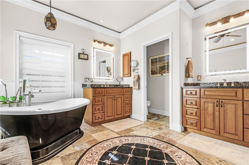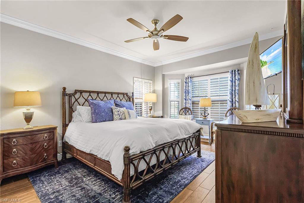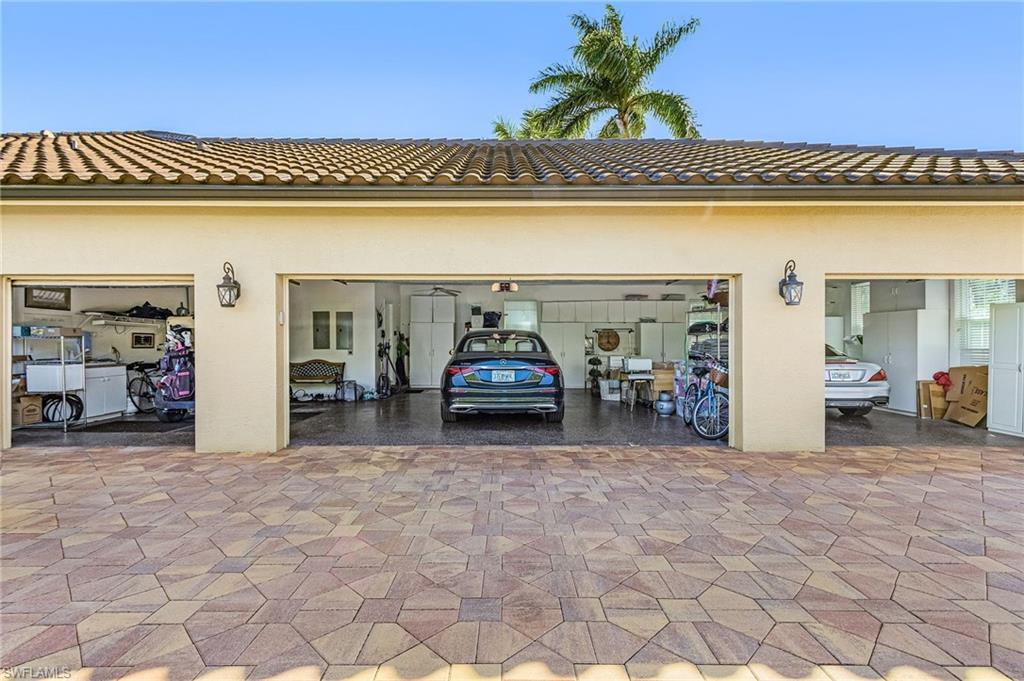 Discover resort-style living at its finest in this exceptional single-family residence in the prestigious gated community of Fiddlesticks Country Club. This beautifully maintained home features 3 bedrooms plus a den, 3 full bathrooms, and 3,113 sq ft under air within a generous 6,335 sq ft total. Enter through impressive custom front doors into a welcoming foyer with elegant chandelier, volume ceilings, and crown molding in the main living areas. The open, light-filled design instantly captivates with magnificent lake-to-golf-course views. Relax in the spacious family room with built-in cabinets, dine formally in the elegant tray-ceilinged dining room, or entertain in the chef's kitchenu2014equipped with double ovens, built-in refrigerator/freezer, wine cooler, induction cooktop, microwave, standalone ice maker, custom cabinetry, walk-in pantry, and breakfast bar for four. A cozy breakfast nook overlooks the pool and panoramas. The expansive primary suite boasts a sitting area, tray ceiling, and French doors to the lanai. The luxurious primary bath offers dual sinks, a spa-like shower with dual heads/body jets/rainfall, large soaking tub, private commode, and walk-in closet. Two generous guest bedrooms share updated baths (one with patio access), plus a large laundry room with tub, counters, cabinetry, and storage. The east-exposed outdoor oasis features a sparkling pool with waterfall and water features, a relaxing hot tub, expansive paver lanai, and a generously sized covered lanai area with outdoor seating, ceiling fans, TV, fire pit, and furnitureu2014all beautifully enclosed in a spacious screened pool cage for year-round enjoymentu2014with 2024 automatic hurricane shutters. Full hurricane protection includes impact garage doors and 28 hurricane-impact windows and sliding doors replaced in 2024u2014flooding interiors with abundant natural light while framing those unobstructed sunrise and lake/golf panoramas. Standout extras: a spacious 4-car attached garage with epoxy floors, ample cabinets, and space for 3 cars + 2 golf carts; exceptional curb appeal via unique circular paver driveway (far from standard bricksu2014must see!), tropical landscaping with mature palms, and a fountain-accented entry walkway; a new tile roof (2018); offered nicely furnished. Ideally situated near the Back Gate to Briarcliff Rd and an easy walk to the dog parku2014yet peacefully removed from any noise. Fiddlesticks Country Club offers two championship golf courses with putting greens, chipping areas, driving range, and pro shop; eight Har-Tru clay tennis courts (one of the top programs in Southwest Florida); pickleball/bocce; zero-entry pool with cabana bar/poolside dining; fitness center with trainer; dog park; clubhouse with formal/casual dining; and year-round social events. Click the virtual tour for floor plan, Zillow Floor Plan Tour, and video walkthrough. Schedule your private showing today to experience this exceptional home and the Fiddlesticks lifestyle firsthand.