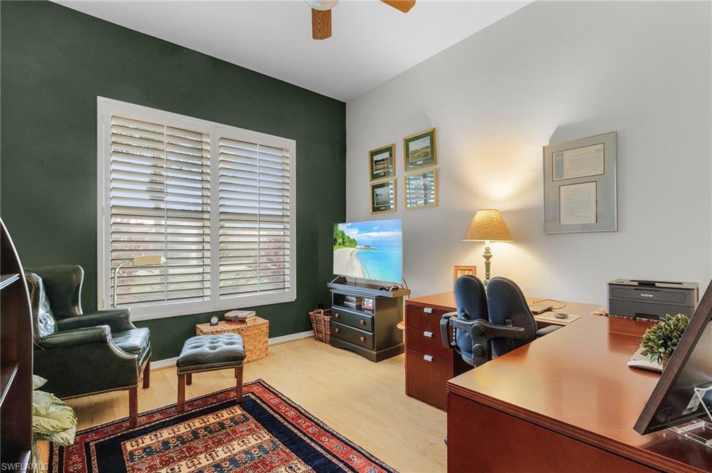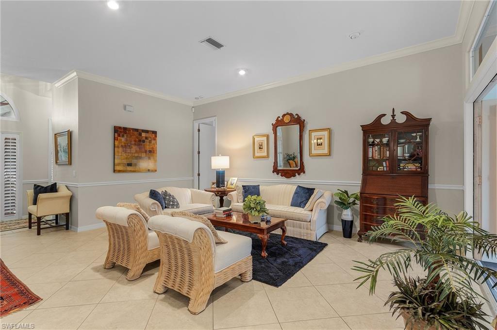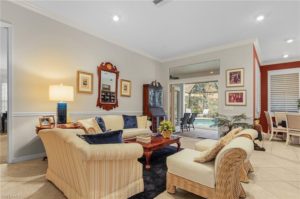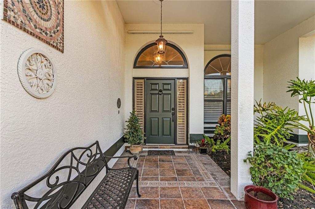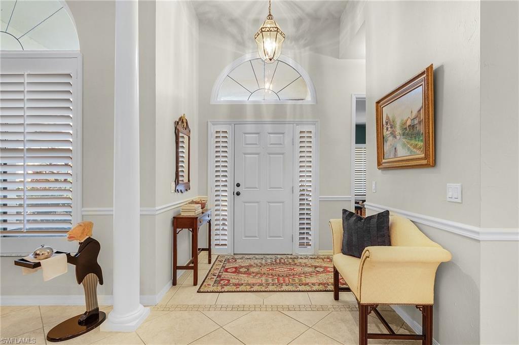 Welcome to your dream home in the prestigious Fiddlesticks Country Club. This stunning 3-bedroom plus den, 3-bathroom residence blends luxury and comfort. Itu2019s ideal for both relaxation and entertaining. Soaring volume and vaulted ceilings create an airy feel inside. Tile floors flow through all living areas. The updated kitchen boasts white cabinets, granite countertops, and stainless steel appliances. A 6-burner gas range with double oven delights any home chef. Plantation shutters add elegance to the windows. The generous master suite offers space for an office or sitting area, plus lanai access. Its updated bathroom includes a walk-in shower, soaking tub, dual sinks, and a walk-in closet. Two spacious guest bedrooms impress, one with an ensuite bathroom. Outside, a paver lanai features a pool, hot tub, and lush landscaping for privacy. Open it up for a serene lake view. Enjoy the wood-burning fireplace indoors, with storm shutters for peace of mind. A spacious side-load 2-car garage and paver driveway enhance the exceptional curb appeal, accented by beautifully landscaped grounds and majestic palm trees with northern exposure. Located in Fiddlesticks Country Club, this home offers an award-winning golf community lifestyle. Enjoy two championship golf courses and 8 Har-Tru clay tennis courts. Relax at the resort-style zero-entry pool with cabana bar and poolside dining. The clubhouse provides formal and casual dining, plus vibrant social events like live music nights. No CDD fee sweetens the deal. This property blends luxury, leisure, and an active lifestyle. Schedule your private tour today!