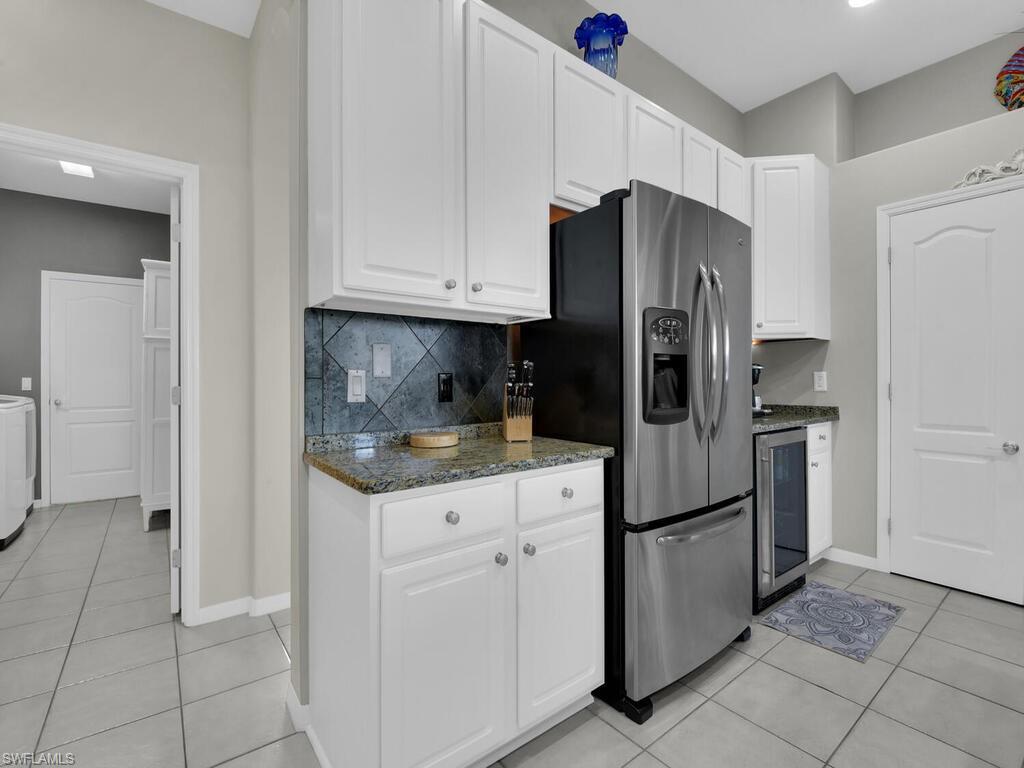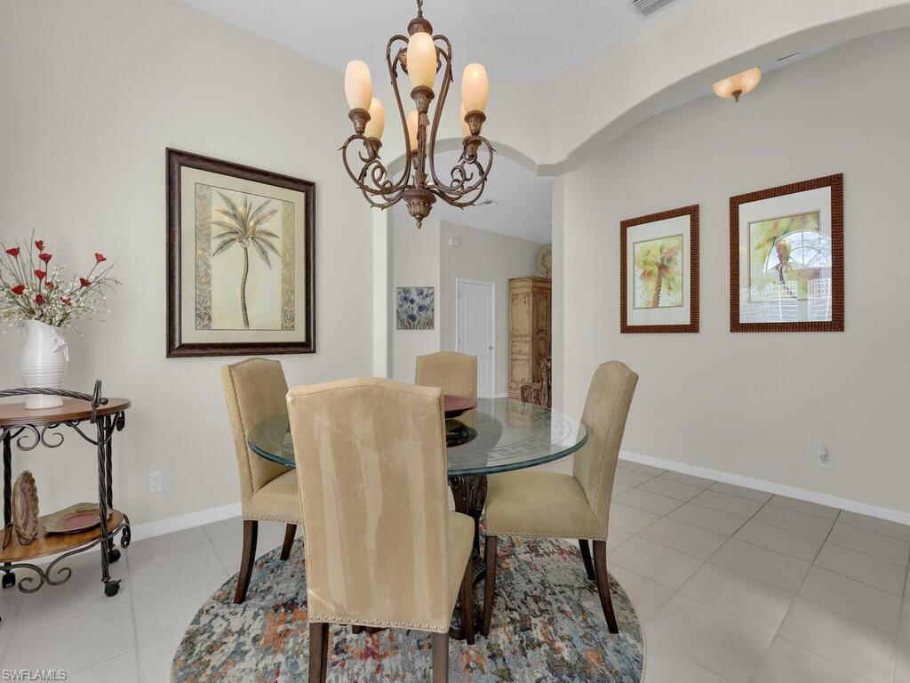 Welcome to the prestigious Fiddlesticks Country Club, where this stunning residence is perfectly positioned on an oversized lot offering breathtaking lake views and an exceptional living experience. Upon entering, you are welcomed by a spacious foyer complemented by neutral tones and tile flooring throughout the main living areas, creating a bright and elegant atmosphere. The beautifully updated kitchen showcases white wood cabinetry, granite countertops, stainless steel appliances u2014 including a wine and beverage refrigerator u2014 a generous breakfast bar, and a cozy dining nook with picturesque views, ideal for everyday dining. The adjoining family room provides a warm and inviting space perfect for entertaining. The oversized primary suite serves as a private retreat with tranquil poolside views through expansive sliding doors, a walk-in closet, and a luxurious ensuite bathroom featuring dual sinks, a soaking tub, and a separate shower. Two additional bedrooms, each with its own private bath, are thoughtfully situated on the opposite side of the home for added privacy. Additional highlights include a well-appointed laundry room and convenient access to the three-car garage with dedicated golf cart parking. The expansive lanai is truly an entertaineru2019s dream, boasting a sparkling heated pool and spa along with multiple seating areas designed for both large gatherings and intimate relaxation. As a resident of Fiddlesticks Country Club, you will enjoy world-class amenities including two of Floridau2019s top-rated golf courses, an elegant clubhouse with full-service dining, a year-round tennis program, a resort-style pool and cabana, a state-of-the-art fitness center, seasonal childrenu2019s programs, and a vibrant social calendar. Located in a NO FLOOD ZONE and offering INSTANT GOLF MEMBERSHIP with county-only taxes, this exceptional home represents more than a residence u2014 it is a lifestyle. A one-time mandatory membership fee of $115,000 and a one-time transfer fee of $2,000 apply. Do not miss the opportunity to own in one of Southwest Floridau2019s most exclusive communities.