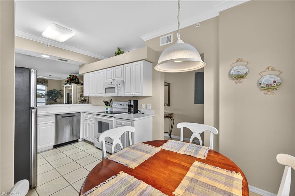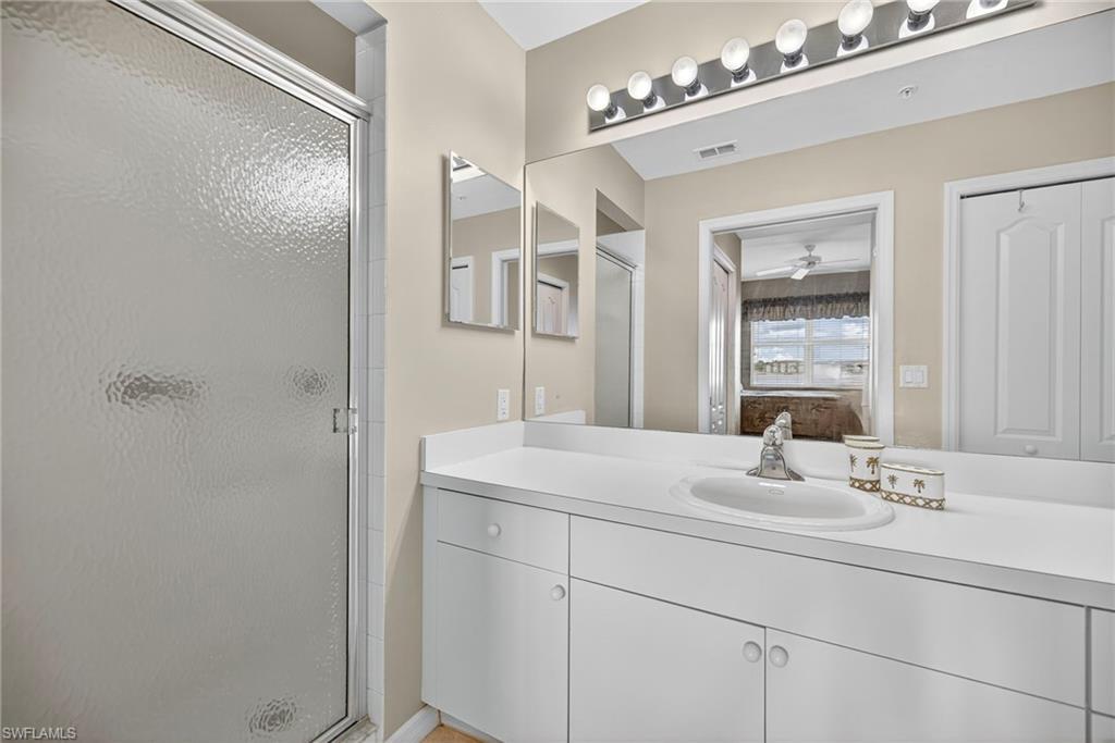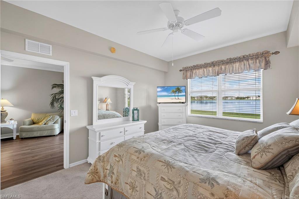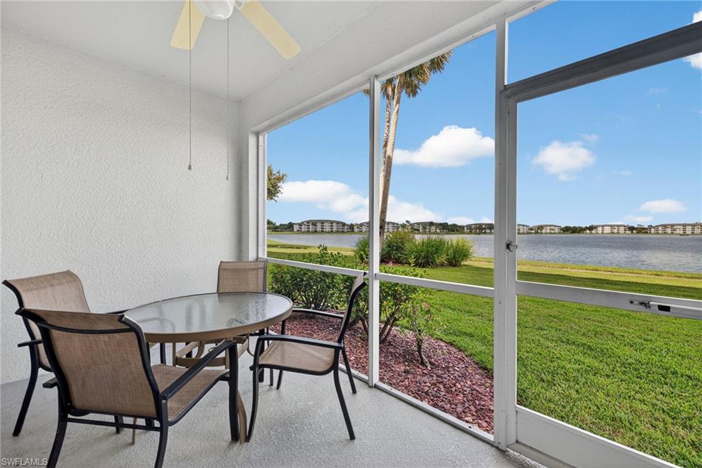 Welcome to your dream retreat in the heart of Heritage Palms Golf & Country Club! This beautifully maintained and tastefully decorated 2-bedroom, 2-bath, first-floor condo upgraded with crown molding, is being offered turnkey, making it the perfect choice for a second home, investment property, or full-time residence. Enjoy stunning panoramic views of the expansive lake and lush golf course right from your private screened lanaiu2014ideal for relaxing evenings and unforgettable sunsets. Just steps from the Terrace pool, this unit offers both convenience and tranquility. Heritage Palms is a vibrant bundled community featuring 36 holes of championship golf, tennis, pickleball, bocce ball, live entertainment, and a full calendar of social activities. Residents also enjoy on-site dining options and the exciting new Tiki Oasis, set to open in Fall 2025. Located just minutes from shopping, dining, Top Golf, movie theaters, RSW airport, and the breathtaking Gulf beaches. Additional perks include a locked storage closet right outside your door and covered parking.