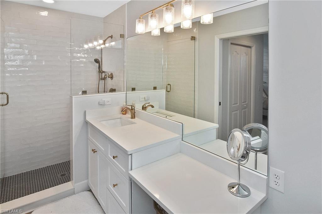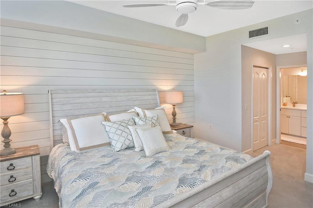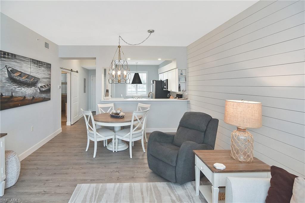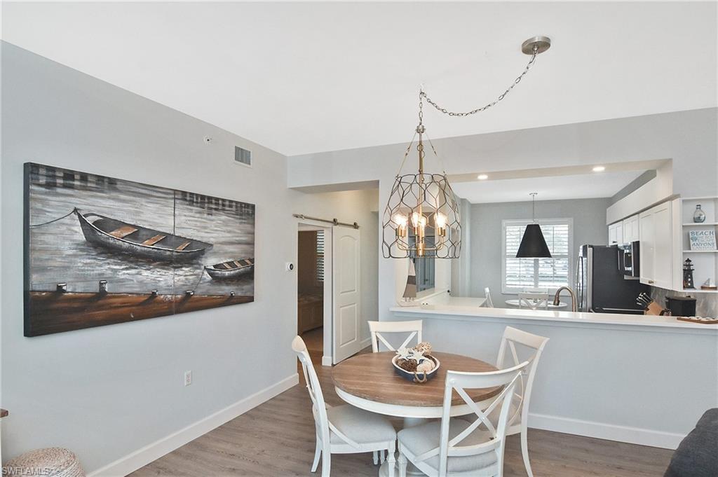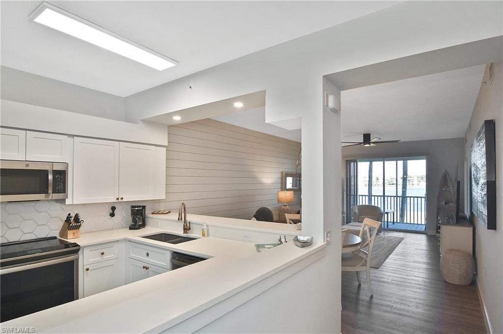 Completely remodeled condo offered turnkeyu2014including all newer large HD TVs. From the moment you enter, youu2019ll notice the bright, open feel created by two kitchen half walls that enhance the lake and fountain views. A shiplap wall extends from the dining area into the family room, adding inviting coastal character. The redesigned kitchen is a standout, featuring new cabinetry with large drawers, white quartz countertops, and stainless-steel appliances, all opening beautifully to the main living area. Cortex cork flooring runs throughout the main living spaces, complemented by modern light fixtures.The bathrooms have been fully renovated, offering premium step-in tile showers with built-in benches, custom vanities, and frameless glass doors, creating a spa-like experience that blends style and function. The private lanai overlooks the 18th hole, with peaceful lake and golf course viewsu2014an ideal spot to enjoy morning coffee or unwind at the end of the day. The buildingu2019s prime location is close to the clubhouse, fitness center, and main pool.This active, amenity-rich community offers 36 holes of championship golf, tennis, pickleball, bocce ball, and a full calendar of social activities and events at Heritage Palms Golf & Country Club. The building features a new roof and elevator, and the well-managed HOA has recently reduced duesu2014offering long-term value and peace of mind. Schedule your showing todayu2014words and pictures truly canu2019t capture the beautiful details of this home.