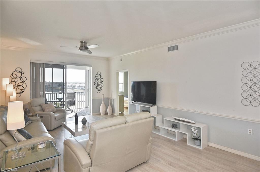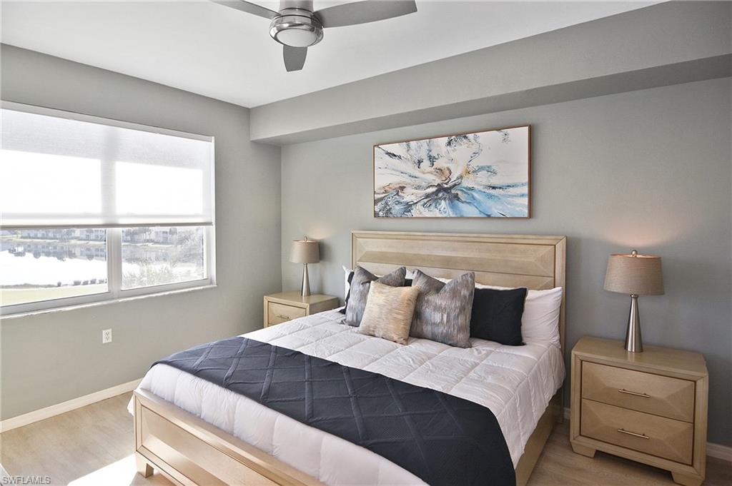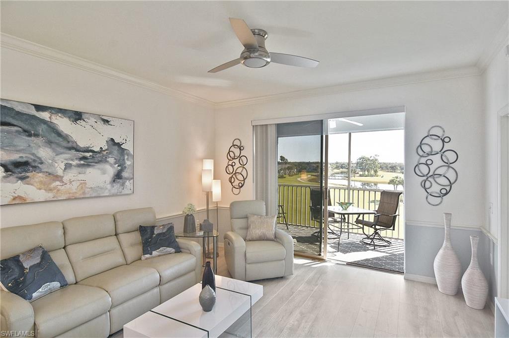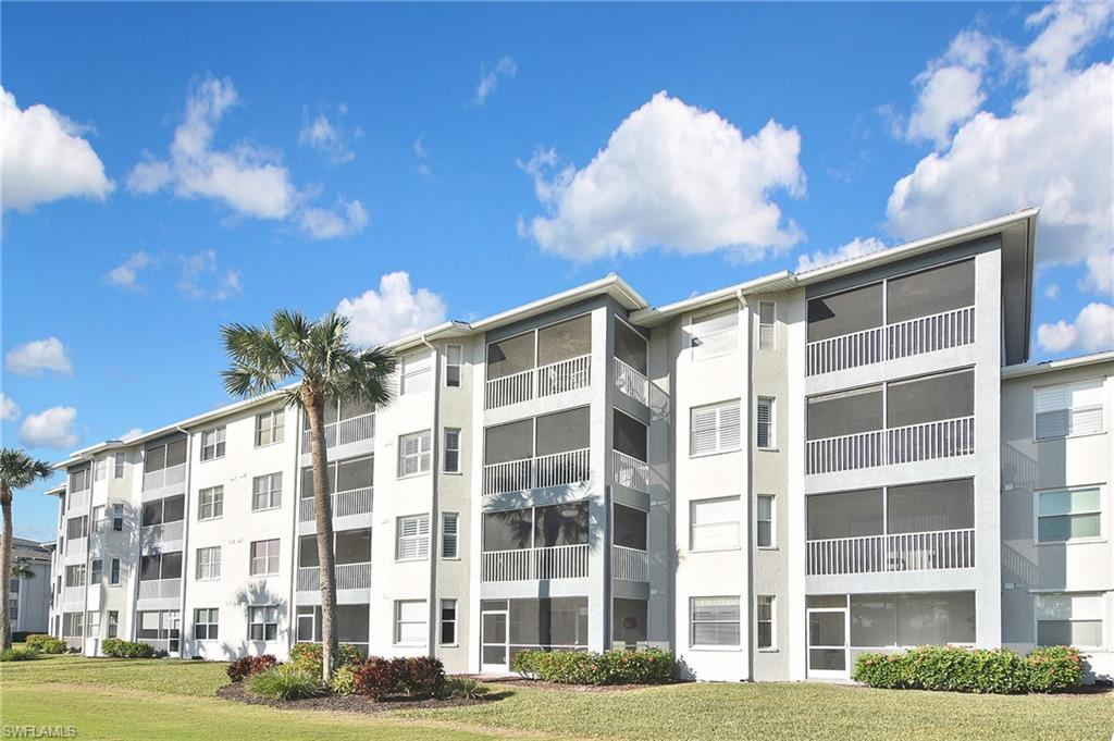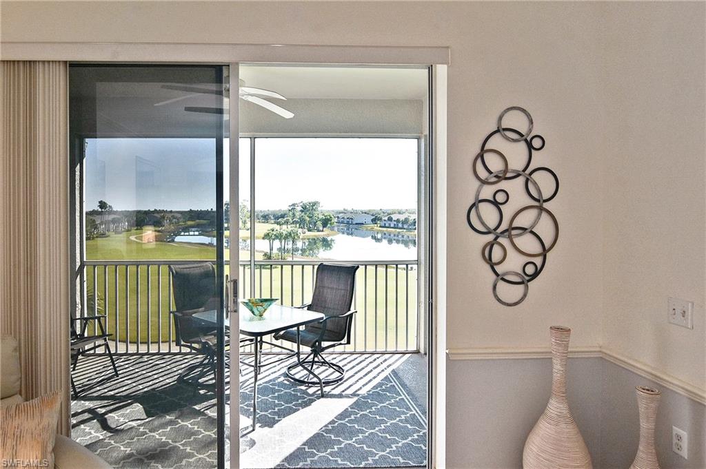 Welcome home! Located in the prestigious bundled-golf community of Heritage Palms, this 4th floor condo is ideal for discerning seasonal or full-time residents seeking luxury, comfort, and breathtaking views. This fully furnished, updated, 2-bedroom/2-bath residence showcases incomparable, unobstructed views of the lake and Royal course 16th hole. The bright and airy home is enhanced by an new HVAC (2024),granite countertops, custom blinds, and new designer light fixtures throughout. The interior has been professionally curated with new high-end leather furnishings and a refined palette of golds, soothing blues, and grays, creating an elegant, yet inviting, atmosphere. The desirable split-bedroom layout offers exceptional privacy. The luxurious primary suite features two walk-in closets and a spa-inspired, upgraded en-suite bath highlighted by new shower with sophisticated gray and white finishes and new granite vanity. The well appointed guest bedroom and full guest bath provide comfort for visitors. Enjoy elevated, resort-style living in this prestigious gated golf community with two 18-hole, championship golf courses, 9 pools (including a resort and a lap pool), tennis, pickleball, a grand clubhouse with fine and casual dining, and an active social lifestyle. Ideally located just 10 miles from RSW airport, 30 minutes to the beach with grocery stores and restaurants all around.