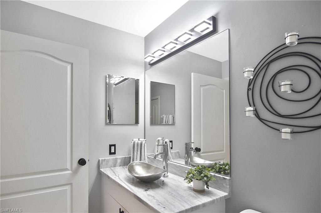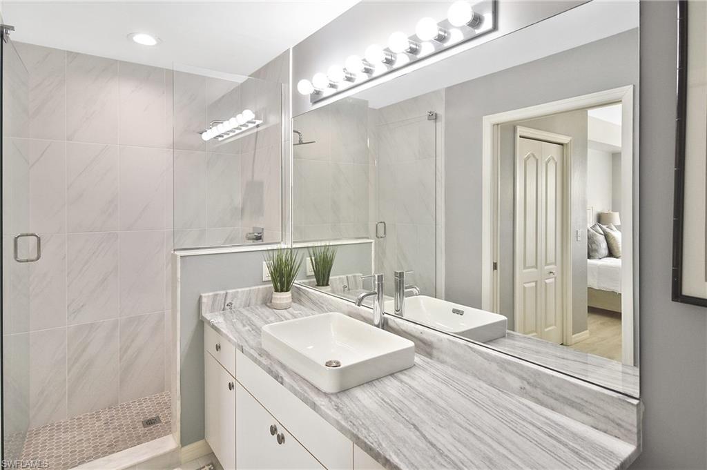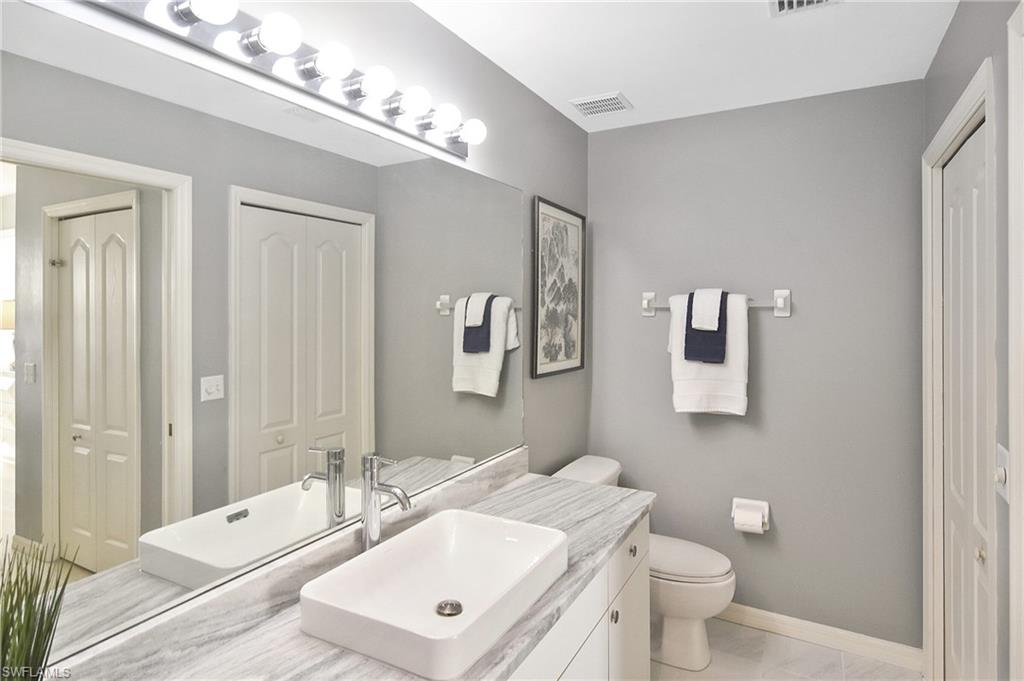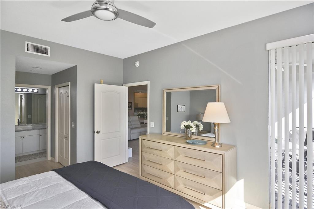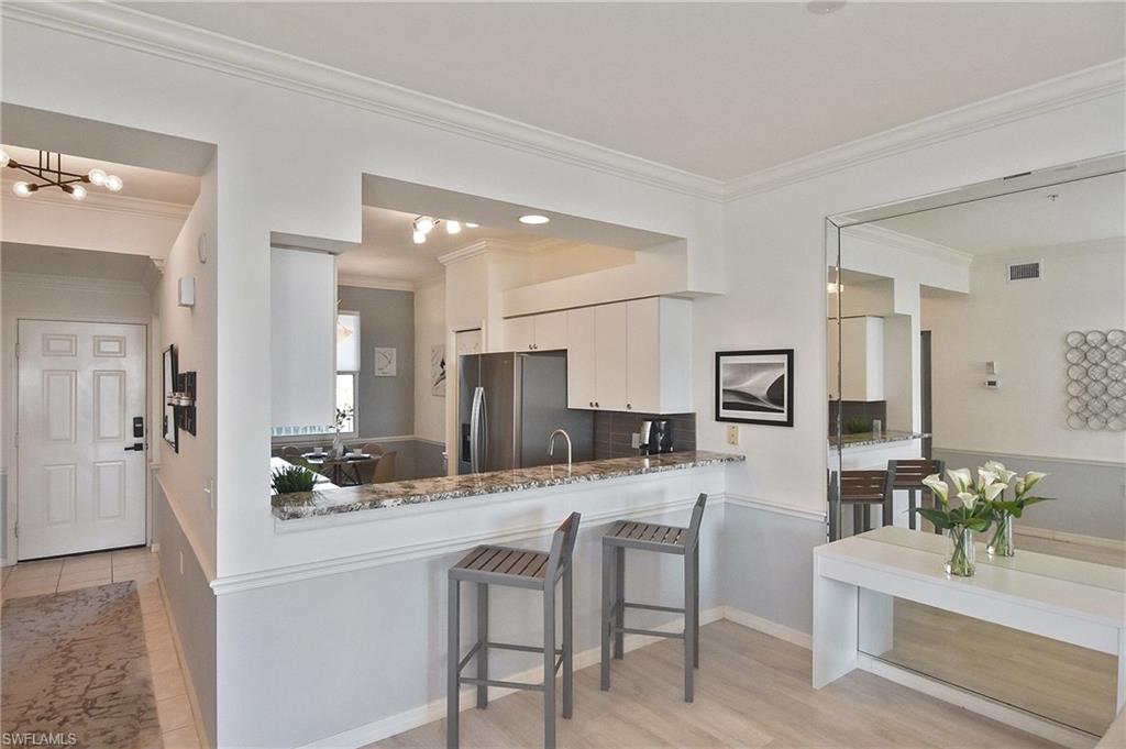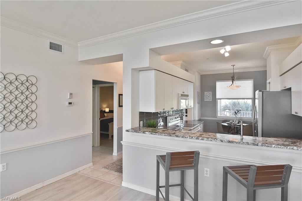 Welcome home! Located in the prestigious bundled-golf community of Heritage Palms, this 4th floor condo is ideal for discerning seasonal or full-time residents seeking luxury, comfort, and breathtaking views. This fully furnished, updated, 2-bedroom/2-bath residence showcases incomparable, unobstructed views of the lake and Royal course 16th hole. The bright and airy home is enhanced by an new HVAC (2024),granite countertops, custom blinds, and new designer light fixtures throughout. The interior has been professionally curated with new high-end leather furnishings and a refined palette of golds, soothing blues, and grays, creating an elegant, yet inviting, atmosphere. The desirable split-bedroom layout offers exceptional privacy. The luxurious primary suite features two walk-in closets and a spa-inspired, upgraded en-suite bath highlighted by new shower with sophisticated gray and white finishes and new granite vanity. The well appointed guest bedroom and full guest bath provide comfort for visitors. Enjoy elevated, resort-style living in this prestigious gated golf community with two 18-hole, championship golf courses, 9 pools (including a resort and a lap pool), tennis, pickleball, a grand clubhouse with fine and casual dining, and an active social lifestyle. Ideally located just 10 miles from RSW airport, 30 minutes to the beach with grocery stores and restaurants all around.