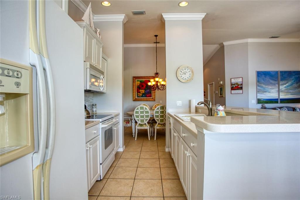 Top-Floor Veranda with Spectacular Golf & Lake Views. Relax and unwind in this top-floor Veranda with sweeping views down the 10th hole of the Royal Courseu2014lakes and wooded areas included. The popular Dogwood floor plan offers an open layout where the kitchen overlooks the living and dining areas, creating the perfect space to entertain or simply enjoy a quiet evening at home. Both bedrooms and full baths are conveniently located at the front of the condo, providing privacy and comfort. Enjoy two lanaisu2014sunrises from the front and sunsets from the back. A one-car detached garage offers room for your car, bikes, and grill. Just a short 7 minute walk to the neighborhood pool, clubhouse, and activity center. Built in 2005, this building features upgraded windows for added value and peace of mind. Heritage Palms is an active, resort-style community featuring two golf courses, tennis, pickleball, and two on-site restaurant venues. Ideally located in the heart of Fort Myers, just minutes from SWFL International Airport, beaches, dining, and shopping.