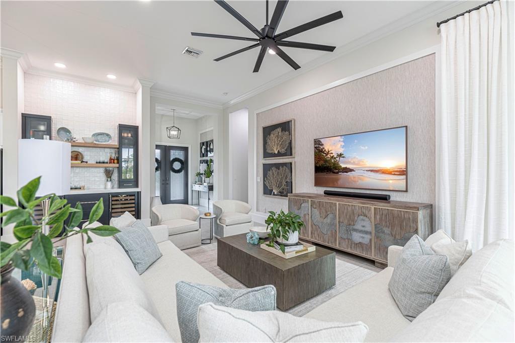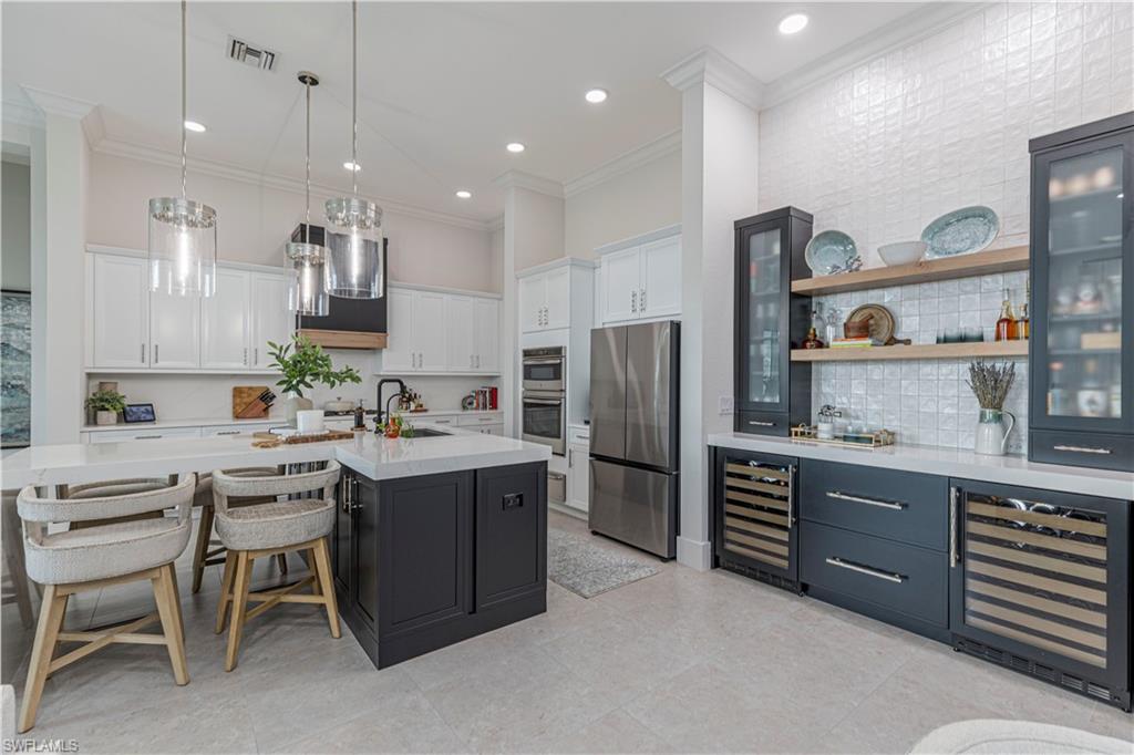 Stunning Waterfront Living in the Stock Development masterpiece, Hidden Harbor. Discover one of Southwest Floridau2019s most sought-after gated Gulf-access communities. This custom-built home was reimagined in 2024. From exterior, to every detail inside. Nothing was overlooked. If you are looking for a newly designed home with the finest details in place, this recently updated $500,000 redesign is ready for you! Experience true coastal lifestyle, all with direct and bridge-free access to the Gulf of Mexico. Situated on a large lot, this four-bedroom plus den, four-bathroom residence offers over 2,800 square feet of beautifully designed living space. Tall ceilings, impact-resistant windows, and a mix of hardwood and designer tile flooring, custom closets, wall and ceiling details throughout and updates that abound and surprise. The spacious great room showcases water and mangrove views, highlighted by custom wall details, window treatments, and natural light. At the heart of the home, the gourmet kitchen features quartz countertops and backsplash, an oversized island, gas cooktop, wall oven, walk-in pantry, and a butleru2019s wall with 2 wine coolers and added storageu2014perfect for everyday living and entertaining. The primary suite provides a serene retreat with pool and water views, sliders to the pool, dual custom closets, and a spa-inspired bath with dual vanities, a soaking tub, and a walk-in shower. The flexible den serves as an ideal office, media room, or additional bedroom. Step outside to your brand new outdoor oasisu2014a gas-heated saltwater pool and spa with Pentair one-touch controls, deck jets, and a piped in natural gas fire table. A screened-in lanai, perfect for year round entertainment, features a built-in outdoor kitchen with gas grill, stainless hood, sink, Naturekast cabinetry, beverage drawers, and warming drawer. Remote control power screens for easy shade when needed. For boating enthusiasts, the new floating TideRider dock includes electric and water hookups, accommodating up to a 30-foot vessel. Enjoy easy, bridge-free access through Mullock Creek and Estero Bayu2014one of the best setups for boaters in the area. Additional highlights include a tile roof, whole house Generac Generator, long paver driveway, oversized three-car garage, and well kept with no storm damage history. Furnishings are negotiable. Residents of Hidden Harbor enjoy resort-style amenities including a clubhouse, fitness center, pool, kayak launch, fire pit, and community dock. The HOA also covers lawn care, sprinkler system, seawall maintenance, and mangrove trimming, offering an easy lifestyle. Located just 15 minutes from RSW Airport and close to beaches, HealthPark, Gulf Coast Medical Center, shopping, and dining. This home delivers the ultimate Southwest Florida experience. Schedule your private tour today and discover why Hidden Harbor is one of the areau2019s most exclusive waterfront communities.