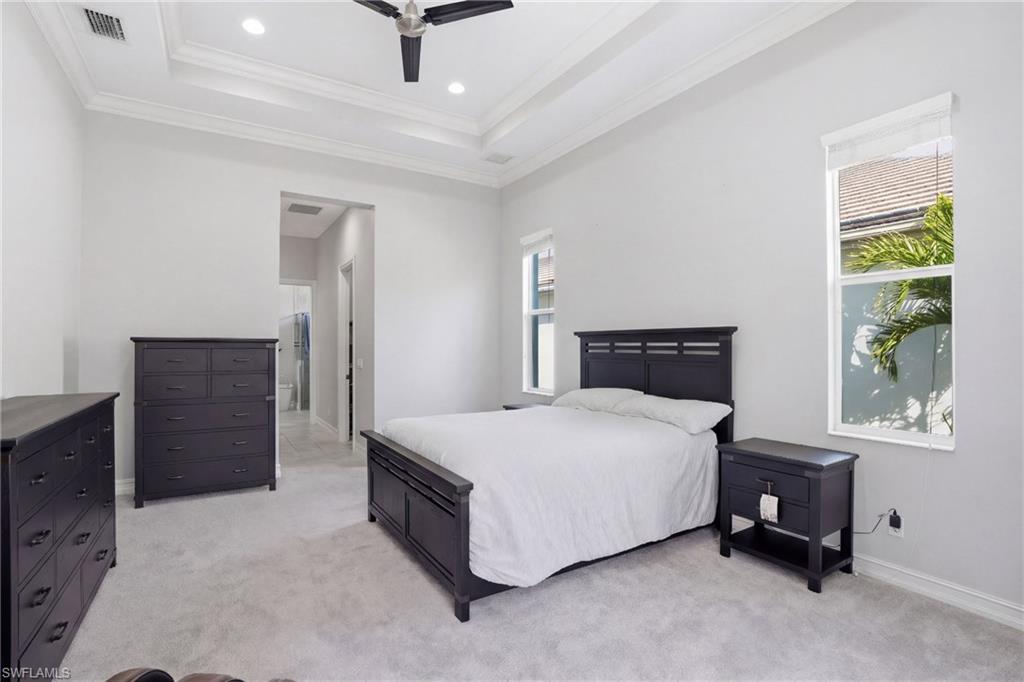Huge Price Improvement! Welcome to this stunning to this stunning 3 bed+Den / 3 bath home (2,624 sq ft), pool home built in 2016 by renowned Stock Builders, delivers the perfect blend of elegance and Florida lifestyle. Located in a gated waterfront community, built at the right elevation, this home was dry during the hurricane. The location is excellent with quick access to 41, Alico, and I-75. Coconut Point is less than 15 minutes away, offering great shopping and dining options. Step inside to soaring 12' ceilings, abundant natural light, and an open floor plan with split bedroomsu2014all with custom closets and en-suite baths including a pool bath. A private den adds flexibility. The great room flows effortlessly into the gourmet kitchen with a large center island and a natural gas cooktopu2014the ideal setup for entertaining. Outdoor living lives up to the hype: Awesome entertainment space under the screened lanai (51' x 31'), a full outdoor kitchen for Football Sunday parties, a heated pool with a spill-over spa, and a lush, treelined yard ensure youu2019ll be living your best backyard life. And for peace of mindu2014a safe room in the garage along with impact glass windows & doors throughout. The third car garage is perfect for storing all of your Florida toys, too! Amenities in Hidden Harbor feel like resort-u00adlife: clubhouse with large party room and full kitchen, fitness center, heated community pool and sundeck, outdoor kitchen, fire pit, large floating dock, kayak launch, and exclusive kayak access. Paddle to breathtaking waters via canals and explore the back bay or head toward Lovers Key. Rare opportunity to live Florida luxury and privacy in a premier gated neighborhoodu2014schedule your private showing today!