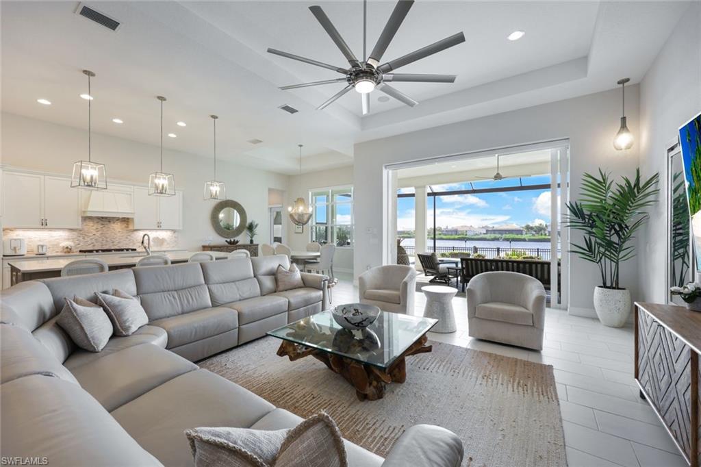 Boater's Paradise in Hidden Harbor with direct Gulf access! This stunning waterfront oasis, crafted by award-winning luxury builder Stock Development, epitomizes coastal living. Enjoy expansive water views, Floridau2019s famed sunsets, and unforgettable memories out on the water. Set on a premium lot, this exquisite home boasts an open floor plan featuring a grand owneru2019s suite, three guest bedrooms, three full baths, a separate study, and an oversized two-car garage. Inside, elegant upgrades abound: custom cabinetry with quartz countertops, frameless glass showers, spacious walk-in closets, soaring ceilings, new designer light fixtures, and motorized shades throughout. Additional amenities include a whole-house water filtration system, natural gas auto-start generator, high-impact windows and sliders, a Ring security system, motorized windstorm screens, and a newly installed panoramic pool cage. Step outside to a truly remarkable outdoor living area. A built-in kitchen and generous alfresco dining space provide the perfect setting for entertaining, while the pool and spa invite you to relax in the Florida sunshine. Just steps from the lanai, the private floating dock is a dream for anglers and boating enthusiasts alike. Enjoy easy access to scenic intercoastal waterways, including Estero Bay, Loveru2019s Key, and Fort Myers Beach, with outstanding waterfront dining and beautiful beaches just a boat ride away. HiddenHarboru2019s amenities complete this lifestyle with a clubhouse, fitness center, pool, sundeck, fire pit, BBQ area, and a kayak launch! Experience the ultimate in luxury coastal living at Hidden Harbor. The home is being offered TURNKEY. New photos of updated furnishings are coming soon.