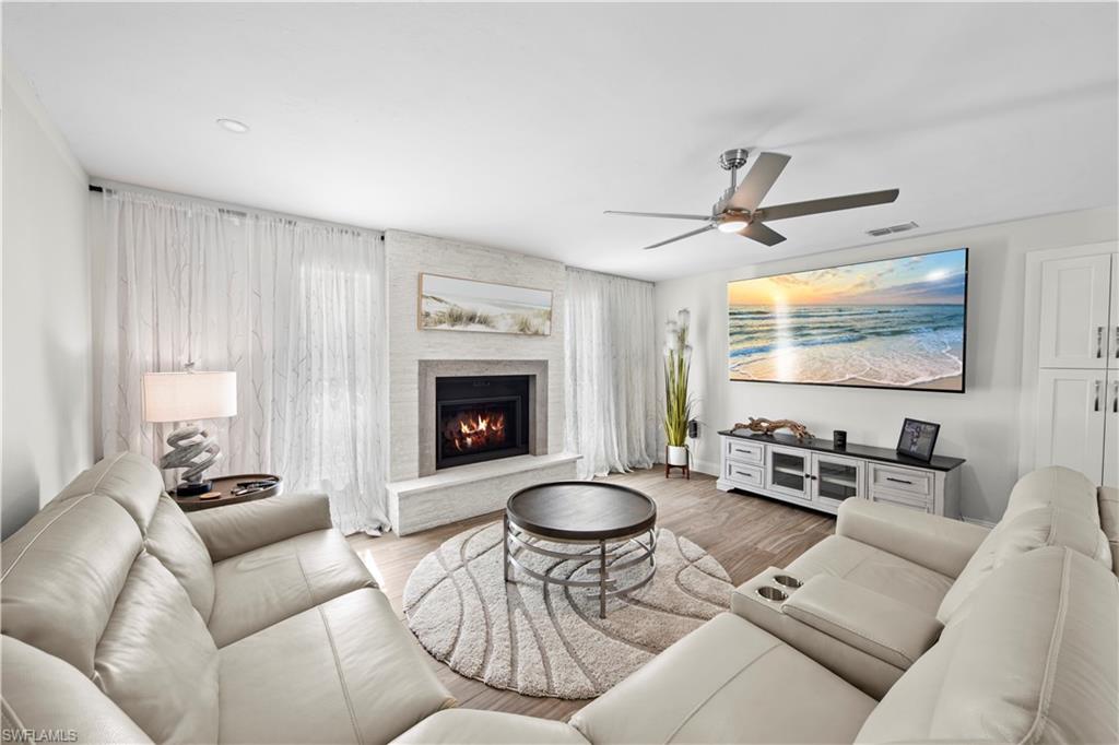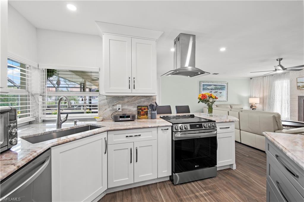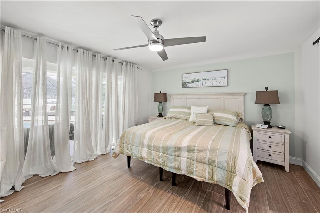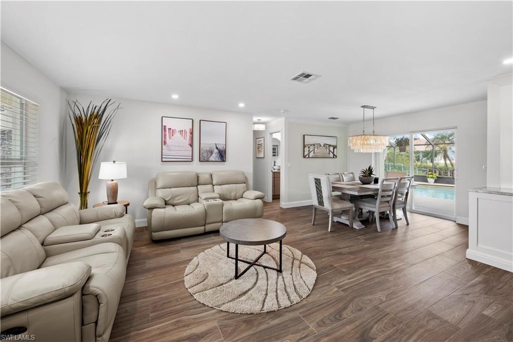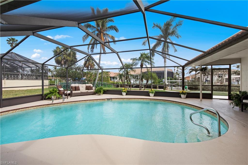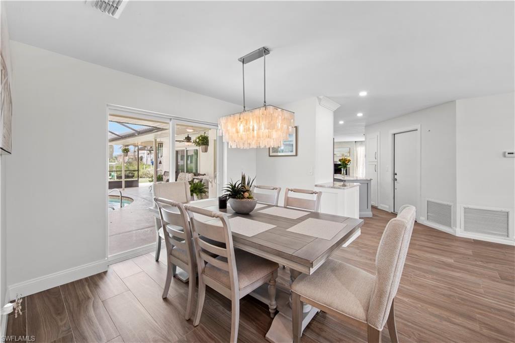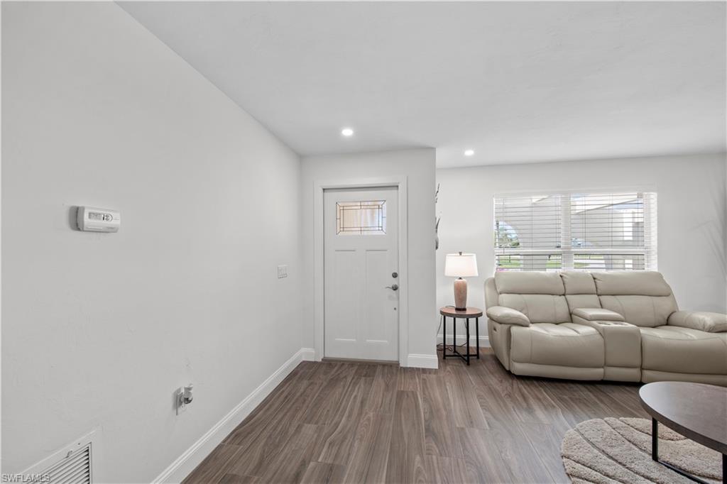 Welcome to this completely renovated Waterfront GEM now available in Island Park Woodlands. If youu2019ve been dreaming of the perfect Florida lifestyle, this waterfront home has everything you need from your backyard you can enjoy boating, kayaking paddleboarding with direct access to Estero Bay and the Gulf, along with world class fishing from your own private 400sq ft composite dock which features an all-aluminum 7,000 lb. boat lift with new stainless lift motors. Watch the manatees and boats go by as you catch snook, tarpon, snapper, jacks, and many other species from your own dock. This 3-bedroom 2 bath home is all about easy waterfront living. Step outside to the lanai where you will find a screened, solar heated in-ground pool. Which is perfect for relaxing, entertaining or enjoying the water views. There is all new landscaping which includes a 6-zone sprinkler system a fully fenced backyard and a Coach / RV pad with electric hookup. The home is concrete block construction with a new tile roof (2019) all hurricane impact windows and sliding doors (2022), new electric and plumbing (2022) new kitchen with custom shaker style soft close cabinetry, stainless steel appliances and granite counters, 2-new baths with custom tile and shaker style soft closes vanities with quartz tops and vessel sinks. The master bedroom has access to the lanai and the master bath features costume walk in glass tile shower. The home also has a new ceramic tile throughout (2022) new HVAC and HW heater (2022). Exterior painted (2025) and a wood burning fireplace in the family room. The Island Park Woodlands is a tranquil yet active community which offers amenities such as private boat ramp, tennis pickleball; cts, playground, BBQ area and lake Grasmere with a t-dock, HOA dues is only $ 240.00 per year.FFor peace of mind the home has a flood insurance policy that is well priced and Transferrable with an extremely low deductible.