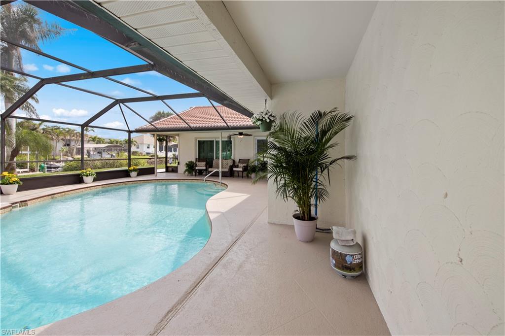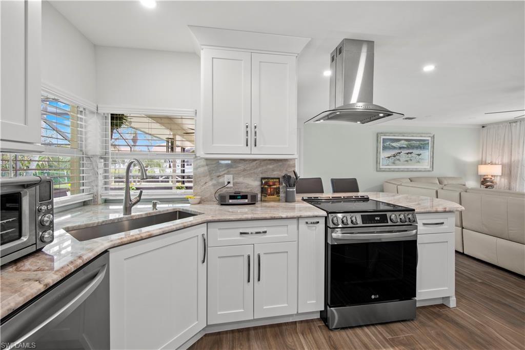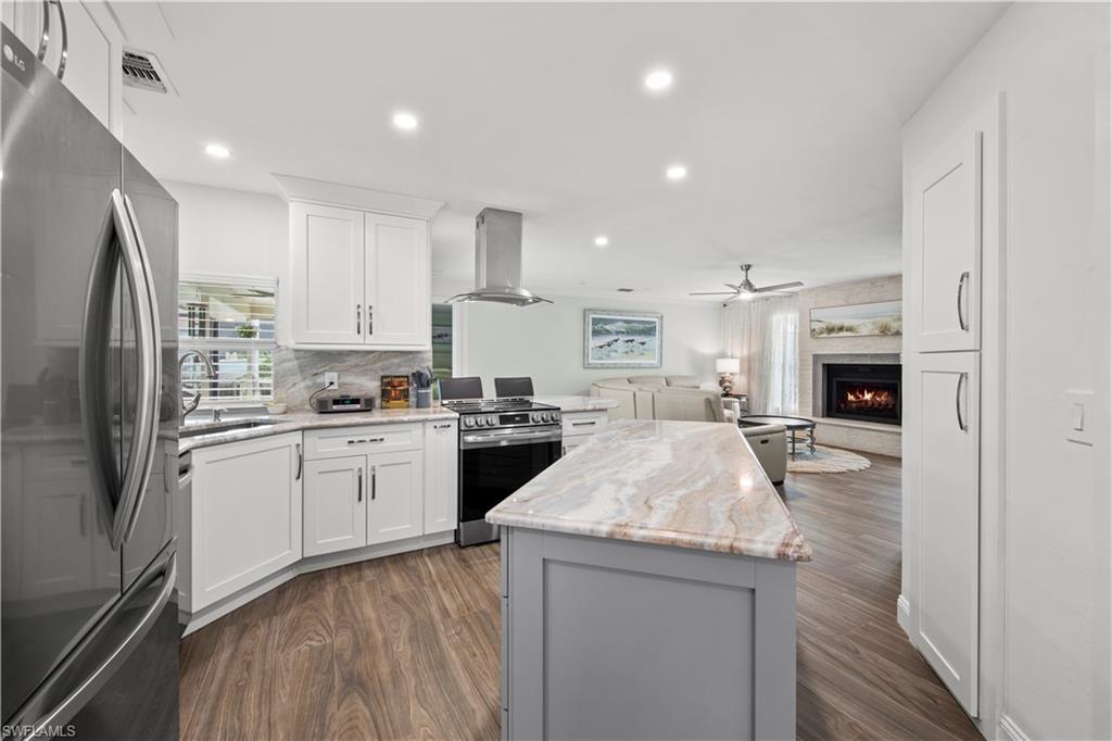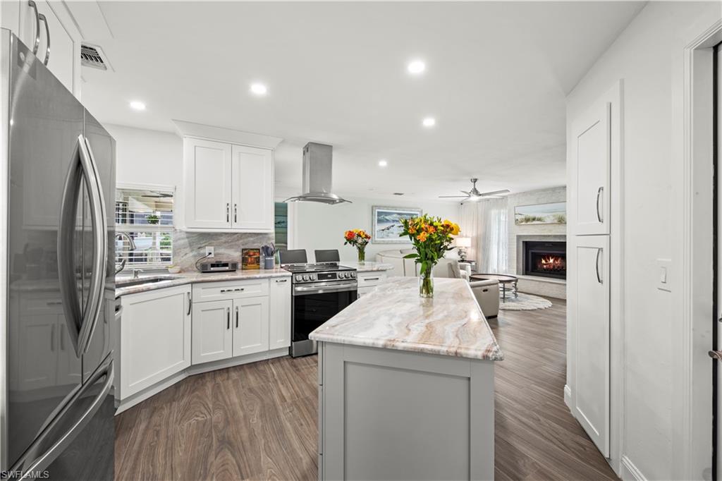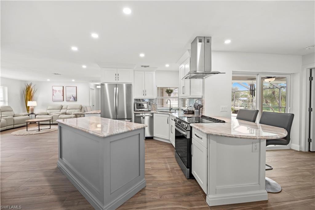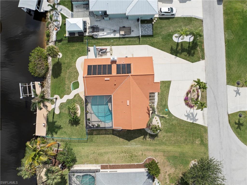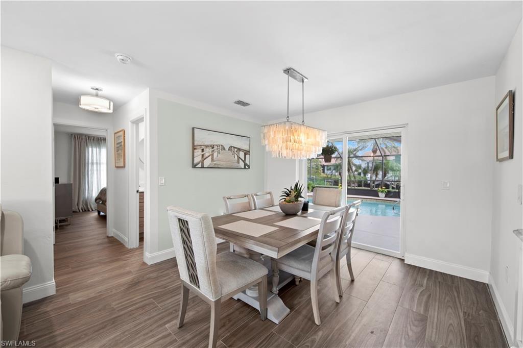 Welcome to this completely renovated Waterfront GEM now available in Island Park Woodlands. If youu2019ve been dreaming of the perfect Florida lifestyle, this waterfront home has everything you need from your backyard you can enjoy boating, kayaking paddleboarding with direct access to Estero Bay and the Gulf, along with world class fishing from your own private 400sq ft composite dock which features an all-aluminum 7,000 lb. boat lift with new stainless lift motors. Watch the manatees and boats go by as you catch snook, tarpon, snapper, jacks, and many other species from your own dock. This 3-bedroom 2 bath home is all about easy waterfront living. Step outside to the lanai where you will find a screened, solar heated in-ground pool. Which is perfect for relaxing, entertaining or enjoying the water views. There is all new landscaping which includes a 6-zone sprinkler system a fully fenced backyard and a Coach / RV pad with electric hookup. The home is concrete block construction with a new tile roof (2019) all hurricane impact windows and sliding doors (2022), new electric and plumbing (2022) new kitchen with custom shaker style soft close cabinetry, stainless steel appliances and granite counters, 2-new baths with custom tile and shaker style soft closes vanities with quartz tops and vessel sinks. The master bedroom has access to the lanai and the master bath features costume walk in glass tile shower. The home also has a new ceramic tile throughout (2022) new HVAC and HW heater (2022). Exterior painted (2025) and a wood burning fireplace in the family room. The Island Park Woodlands is a tranquil yet active community which offers amenities such as private boat ramp, tennis pickleball; cts, playground, BBQ area and lake Grasmere with a t-dock, HOA dues is only $ 240.00 per year.FFor peace of mind the home has a flood insurance policy that is well priced and Transferrable with an extremely low deductible.