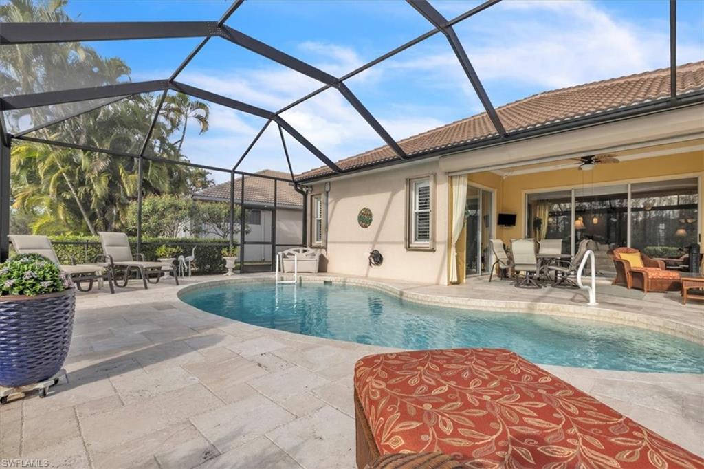 Beautiful Pool Home!! Tons of quality upgrades such as stunning updated kitchen with SS Appliances including SS slide in range, Custom Cabinetry, tiled back splash and Cambria QUARTZ counters and fully remodeled master bath too with his and her vanities!! NEW ROOF, Crown Molding, updated lighting, Hardwood Flooring in the den and updated Premium Carpet, NEW AC 2024, Newer Washer and Dryer, Epoxied Garage Floor, Built in storage cabinets in the garage, laundry room includes laundry sink and and extra cabinetry, Hunter Douglas remote controlled blinds, Phantom Screen Door, Custom Closets, Accordion and Electric Roll Down Storm Shutters and recently painted in and out!! Wait.. there's more... Your own private Oasis awaits you with a GORGEOUS Pool that was completely Resurfaced in 2024, NEW POOL PUMP and NEW POOL HEATER in 2025, Newer Bronze POOL CAGE with upgraded Picture Frame Window, custom Travertine Pool Deck with peaceful water views and an Newer Pavered Driveway!! This is a Social Membership Property so you have low costs without high golf fees, yet plenty of public courses close by to enjoy at your own leisure. The Legends is a prestigious private country club offering tennis, pickle ball, bocce, an exercise facility w/ tons of classes to choose from, everything from Zumba and Pilates to Yoga and Water Aerobics. Multiple dining options such as fine dining, casual sports pub and a gorgeous outdoor sunset grill located aside a lagoon style pool with a waterfall. Conveniently located close to shopping, dining, I75 and Fort Myers International Airport. Resort Style living to it's finest offered partially furnished, beautifully upgraded and waiting for you to call it home!!