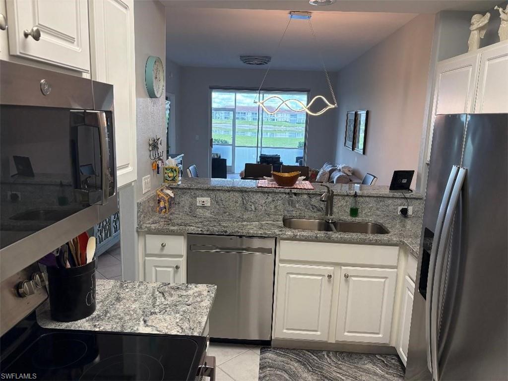 Enjoy Beautiful water and golf views across the 16th and 17th fairways with breathtaking sunrises through floor-to-ceiling windows in this fully furnished first-floor 2BR/2BA condo located in the prestigious Legends Country Club.Convenient first-floor location near assigned carport parking with no stairs or elevators. Recent updates include granite countertops in kitchen and baths, stainless steel appliances, updated bathrooms, new lighting in main living area, newer A/C and water heater, washer and dryer in separate laundry room, hurricane-impact windows, roll-down lanai shutters, and brick pavers on the screened lanai. Tile is in main living areas with carpeted bedrooms.Sold fully furnished, including a Swedish-designed sleeper sofa in the living area and a second Swedish-designed sleeper sofa in the office/guest bedroom, providing flexible sleeping options.Golf membership included with no cart fees. Legends amenities feature championship golf, tennis, pickle ball, bocce, fitness center, resort-style pool, additional nearby neighborhood pool, world class library, The Pub, clubhouse restaurant, and the Sunset Grill.