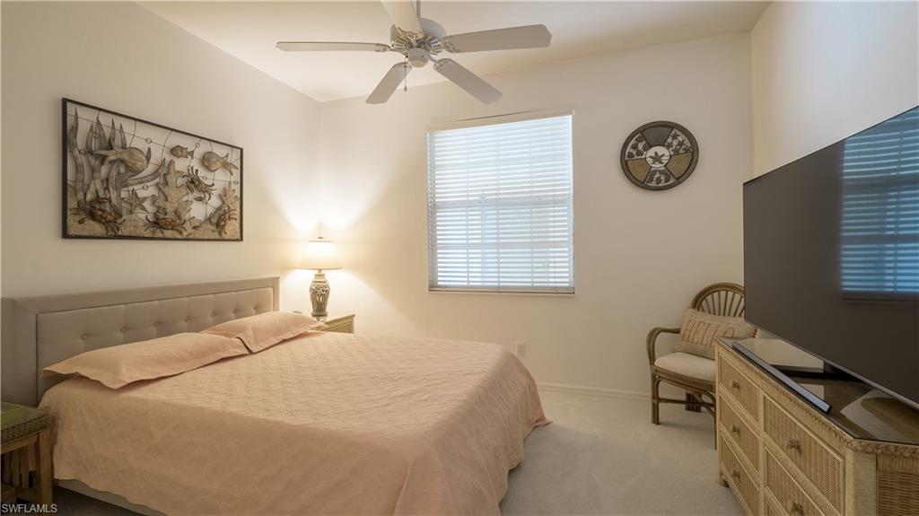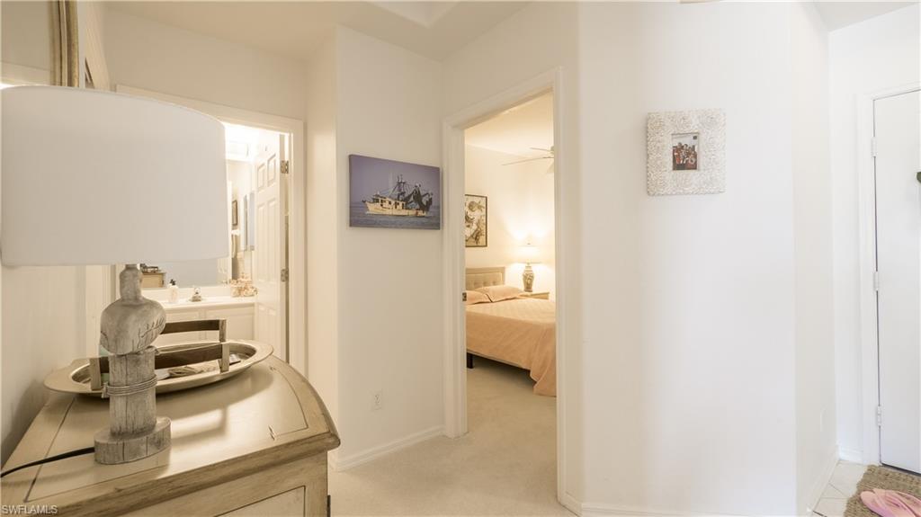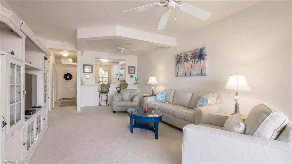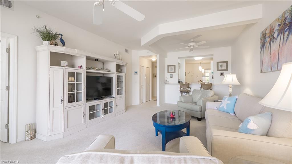 What an amazing view from this second floor larger Bradford floor plan, golf membership condominium in Legends Golf & Country Club. This two bedroom, two bath condo is a split bedroom condo offering an easter sun exposure from the lanai overlooking the newly redesigned 16th & 17th holes and lake. The lanai has a sliding door into the master bedroom and the living room. The master bath offers dual sinks, a soaking tub as well as a walk in shower. The property is bright and cheery with new carpeting and fresh paint and is being sold turnkey furnished with some exclusions. The buildings roof was just replaced a couple years ago. Legends Golf & Country Club is a beautiful guard gated community that offers Championship golf, grand slam tennis, pickleball, a 3,00 square foot clubhouse with 3 restaurants, an amazing resort style pool with waterfall and spa, fitness center with free classes, tons of planned activities such as concerts, dances, card games and much more. Golf members pay no additional fees for carts or greens fees. Legends is located in south Ft. Myers and is convenient to the airport, I-75, shopping, restaurants, spring training baseball games and the beaches.