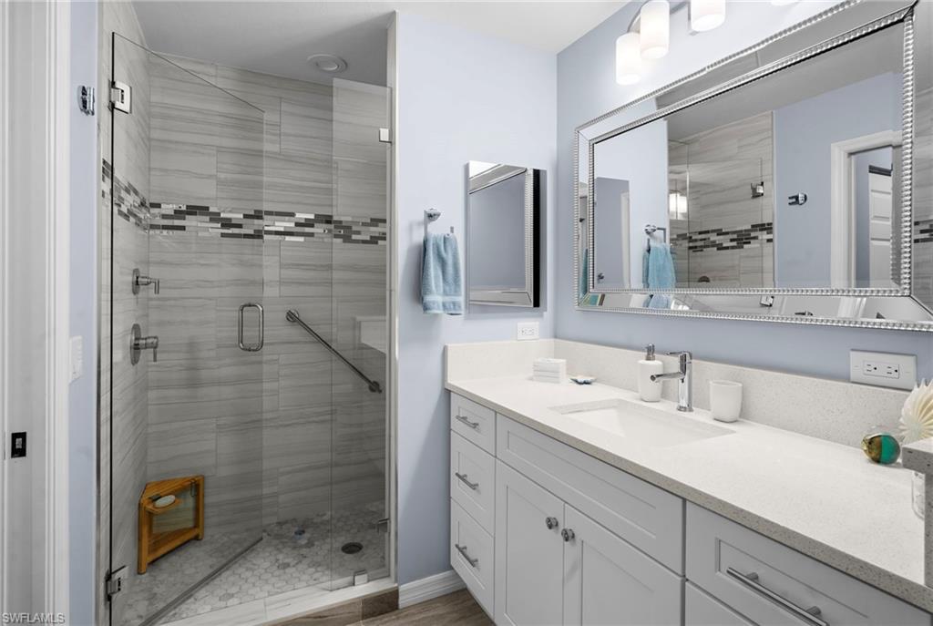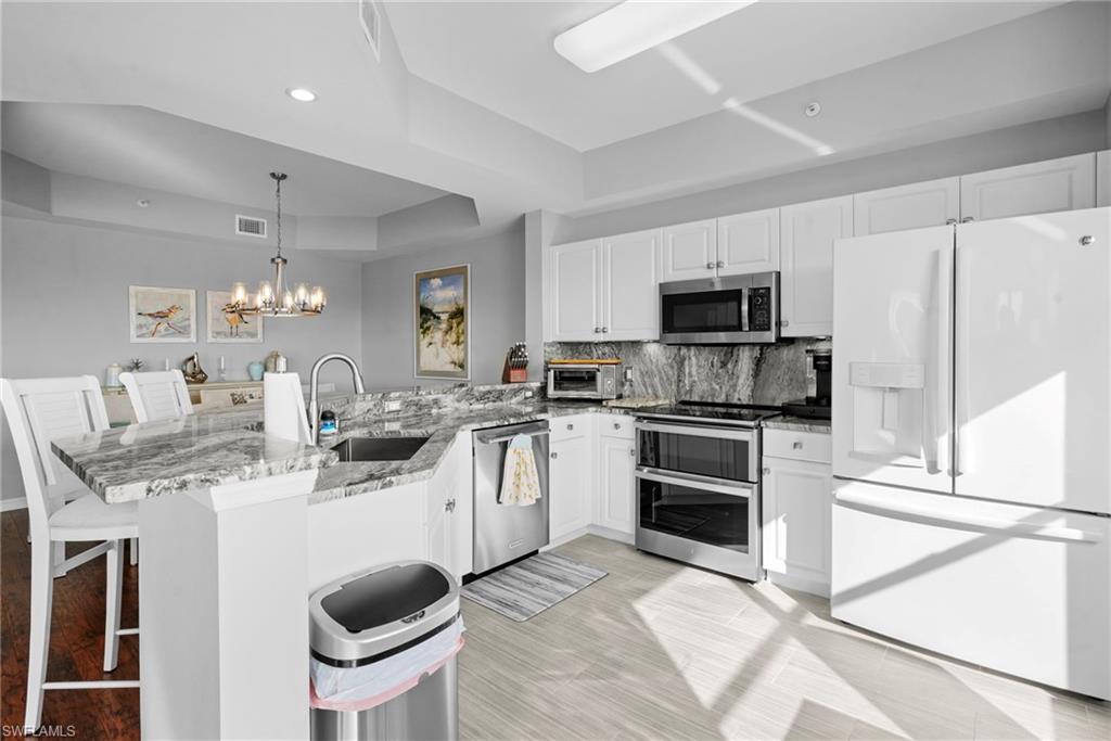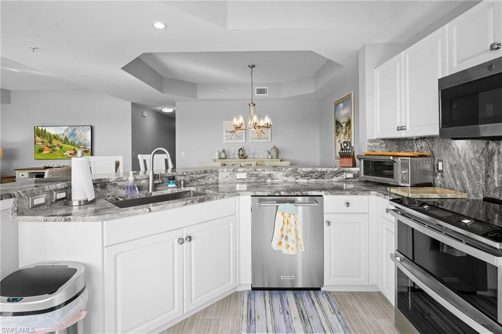 This impeccably kept u201cCarlisleu201d model features an open concept space that is light and bright with a beautiful view of the lake. Itu2019s perfect for your winter escape or year-round living. Notable features include electric hurricane shutters on lanai, new flooring throughout, plantation shutters, electric blinds, both bathrooms have been completely redesigned with walk-in showers. Updated kitchen with stainless appliances, granite counter top and backsplash. Newer A/C and hot water heater, whole house surge protector. The building had a new roof installed in 2023. This Social membership includes an award-winning resort style pool with waterfall and spa, fitness center, tennis and pickle ball courts, 3 amazing restaurant/bars. The community is very active with social events, various clubs, dances, concerts and much more. Legends Country club has no city taxes or C.D.D. fees, making it one of the lowest taxed country clubs in SW Florida. Furniture is negotiable. Located close to shopping, dining, entertainment, l75 interstate and an international airport for easy travels. Resort style living waiting for you to call it home!