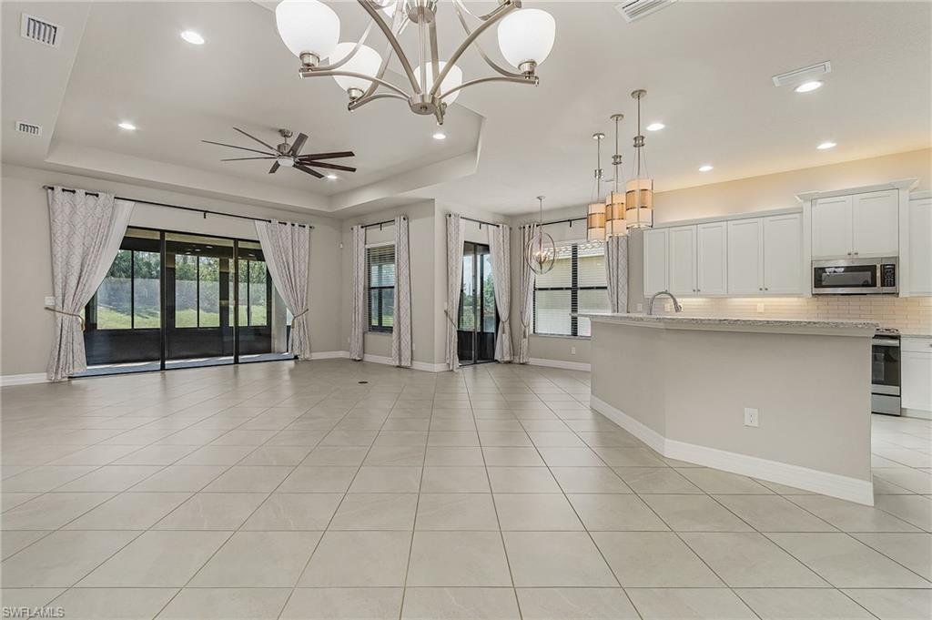 Welcome to Marina Bay ... where your new lifestyle awaits! Move-in Ready! The Bahama Model offers almost 3,000sf of living space and features a split bedroom & great room design w/ volume ceilings throughout. Tuscany inspired architecture greets you right from the curb w/bay window system, tall covered entryway. Inside you will find a comfortable floor plan that allows for much privacy w/ the master suite situated to the rear of the home and guest rooms & den/4th bedroom (w/ French door entry) near the foyer. A gorgeous wood staircase w/wood railing leads to a 20'x15' bonus room w/ half bath-perfect for a media/play room. The `gathering place` of this home is the great room w/tray ceiling, beautiful open concept kitchen, and formal dining area-all having a view of the lanai, not only that, the custom glass enclosure Lanai will give you more year round living space too. Marina Bay offers resort style amenities- 12k+ sf clubhouse w/ pool, lap pool, fitness center, aerobics studio, indoor basketball courts, volleyball, tennis courts, party pavilion & more. Conveniently located off of Treeline in the Daniels Corridor w/ easy access to I-75, SWFL Int Airport, Gulf Coast Town Center, and FGCU. Don't let this one pass you by, make your private showing today!