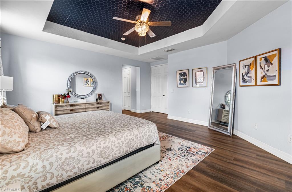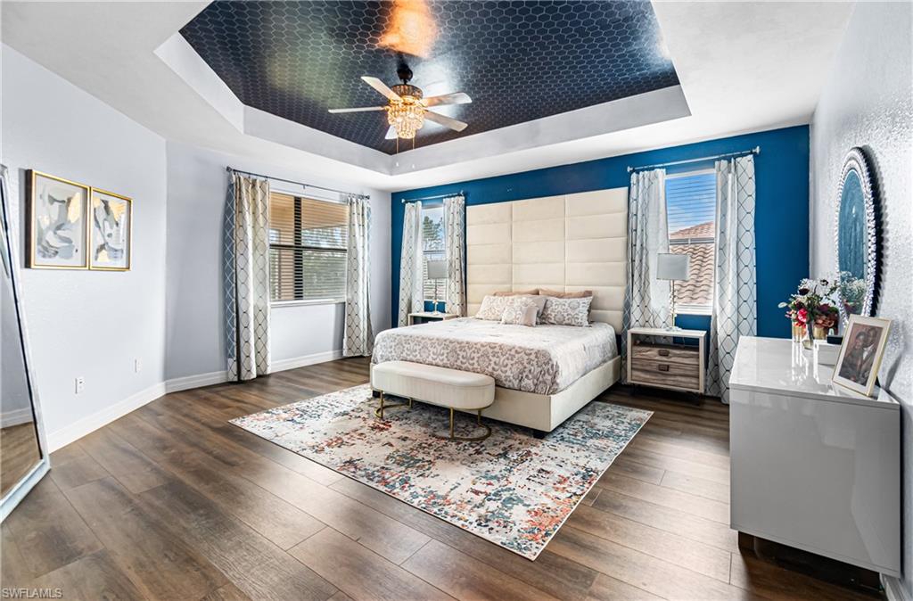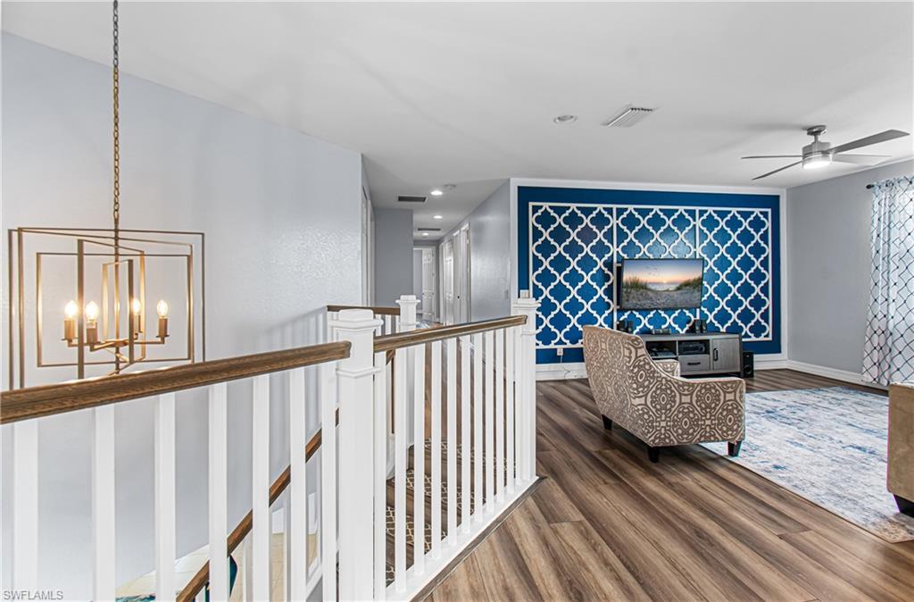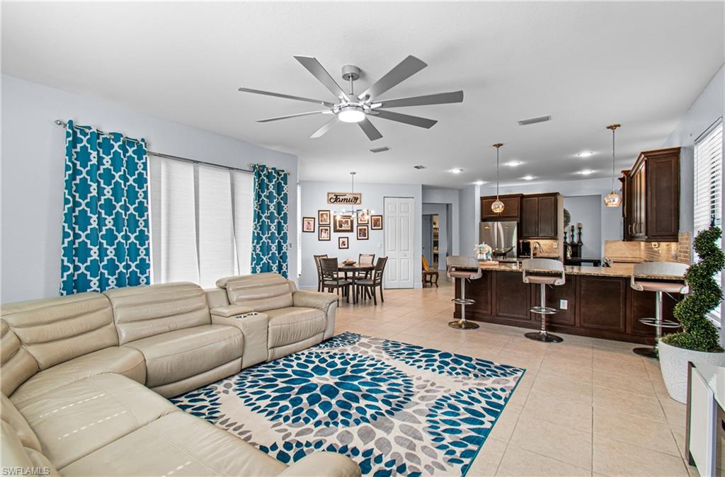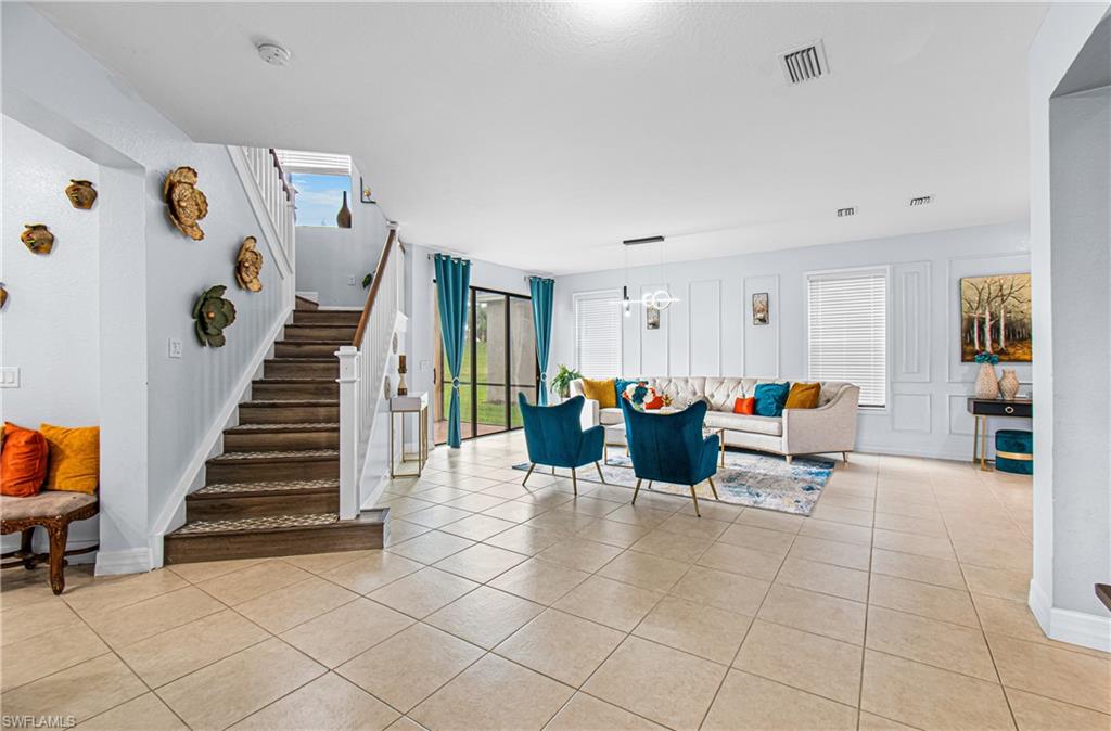 Welcome home to this stunning Montego model where space, style, and comfort come together beautifully. Offering over 4,000 square feet of living space, this impressive home features 6 bedrooms, 5 full bathrooms, and an attached 3-car garage. As you enter, you're welcomed by a beautiful formal living room featuring sliding doors that open to the screened-in lanai, creating the perfect blend of indoor and outdoor living while overlooking the spacious backyard. Just around the corner is the well-appointed kitchen, thoughtfully designed with granite countertops, tile backsplash, stainless steel appliances, and abundant cabinetry. Entertaining is effortless with multiple dining options including a formal dining room, eat-in kitchen, and breakfast bar. The family room, open to the kitchen, is filled with natural light and provides a comfortable space for everyday living and gatherings. The main floor also includes a guest bedroom, full guest bathroom, and convenient mudroom. Upstairs you'll find a large bonus loft, perfect for relaxing, gaming, or movie nights. The primary retreat is truly exceptional, featuring a large soaking tub, separate shower, and private his-and-hers bathrooms with individual vanities. The second floor is completed by additional guest bedrooms, bathrooms, and a laundry room with custom cabinetry and utility sink. Throughout the home you'll find decorative wood accents, along with tile and luxury vinyl flooringu2014no carpetingu2014creating a clean, modern look with easy maintenance. Situated on a quiet cul-de-sac, the home features a spacious backyard with plenty of room for a pool, offering the perfect setting to play, relax, and enjoy the Florida sunshine. Located in the highly sought-after Marina Bay, this all-ages, amenity-rich community offers something for everyone, including a clubhouse, social room, catering kitchen, game and card rooms, indoor sport court, fitness center, resort-style pool, lap pool, splash zone, playground, basketball, tennis, pickleball, and a party pavilion. All of this is just minutes from Southwest Floridau2019s beautiful beaches, dining, shopping, entertainment, spring training stadiums, hospitals, and I-75. This is more than a home, itu2019s the Florida lifestyle youu2019ve been dreaming of.