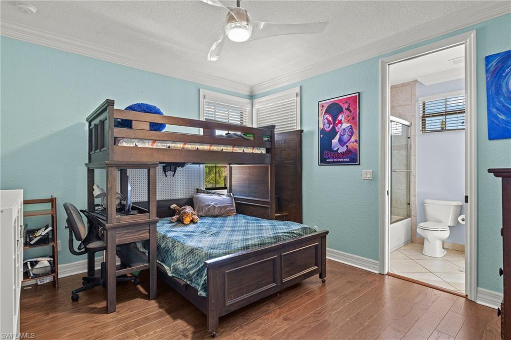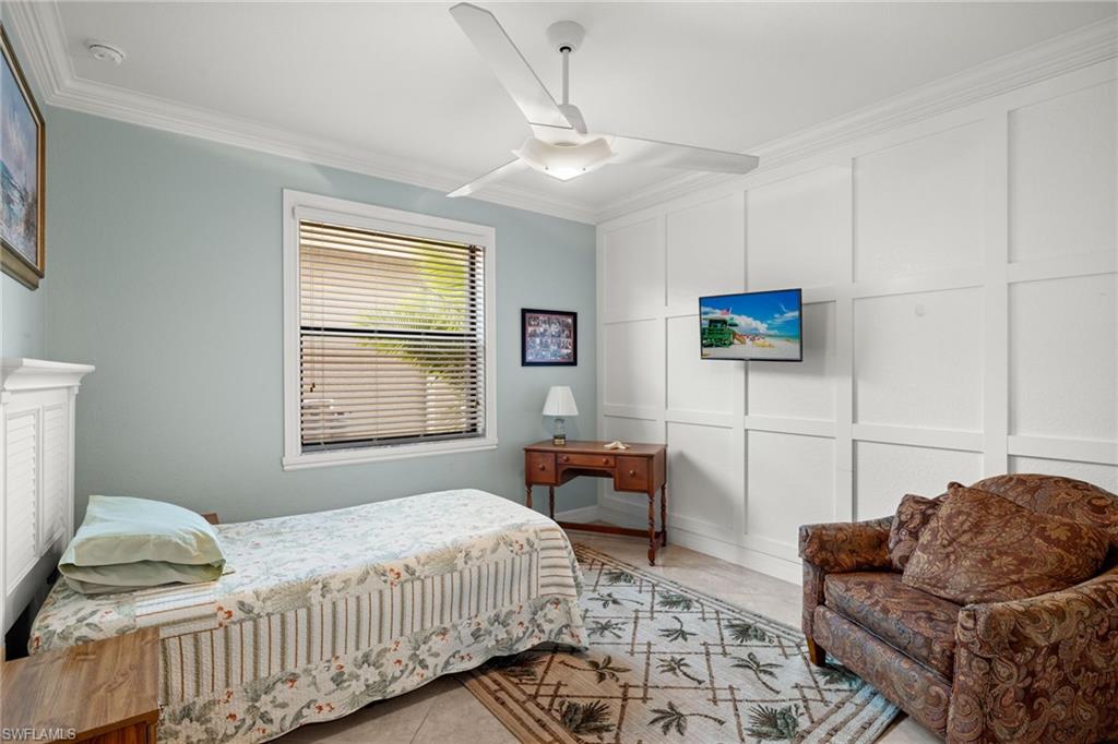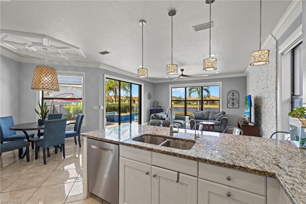 Imagine leaving the cares of the world and flying to your sunny Florida dream home 5 minutes from RSW Airport! This exquisitely upgraded 6 BDR plus LOFT, 5 BATH, 4,190 SF, 3 CAR GARAGE is in a NO FLOOD ZONE.The location is prime in the Marina Bay community, a gated amenity rich resort-lifestyle community, where everything is maintained for you, so its' easy to lock and leave. Effortless entertaining begins with the custom salt water pool and spa which are surrounded by elegant travertine tile and breathtaking sunset water views. This space is enhanced with an mosquito mist system, outdoor mood lighting, fire pit, water features and a fenced in area for child safety and pets. Modern elegance greets you from the private entrance porch into the expansive living area with custom walls, ceilings and crown molding, 20 x 20 porcelain tiles and wood flooring throughout. No Carpet. The heart of the home is the gourmet kitchen/great room area which features upgraded 42` white cabinets, RO water system, island work area, eat-in kitchen area with breakfast bar and stainless appliances, all highlighted by a white stacked custom stone TV wall. Enjoy indoor entertaining in an open concept, exquisitely designed formal dining and living rooms. The second level offers a spacious and versatile Loft, a well-appointed laundry room, and a luxurious primary suite that defines tranquility with dual spa-like baths. Spacious guest rooms provide comfort and privacy for family and friends with on suite baths. This extraordinary home is further complemented by Marina Bayu2019s top-tier amenities, an ultimate clubhouse that offers a 24-hour fitness center, indoor basketball court, resort pool, lap pool, gated kiddie splash pool, tennis and pickleball leagues, and a lifestyle director. No better location, beaches, RSW airport, Interstate 75, fine dining, schools, FGCU, Whole Foods and more!