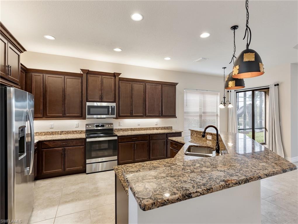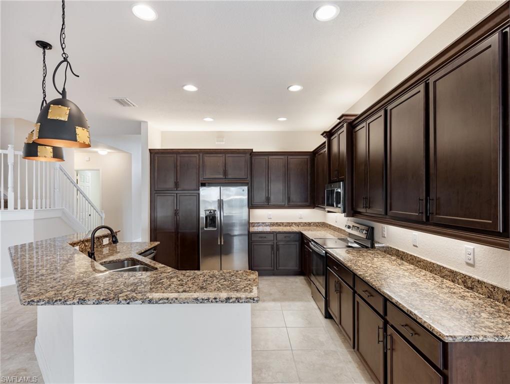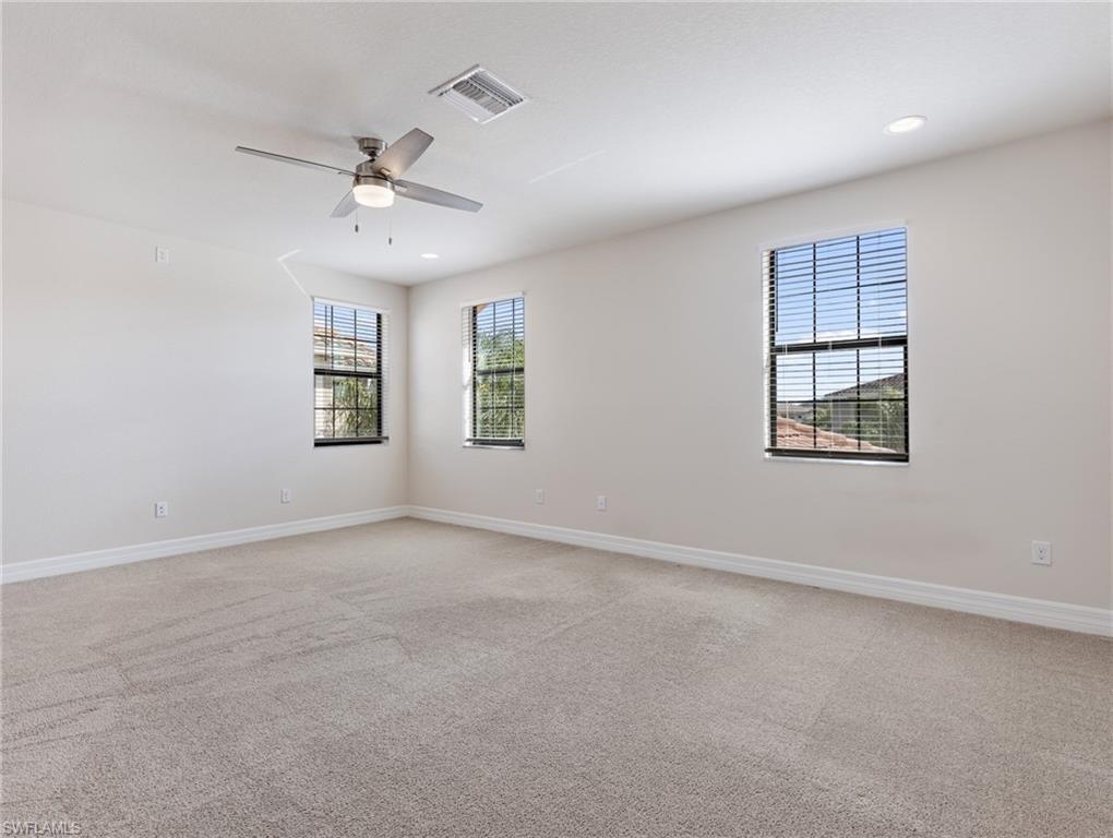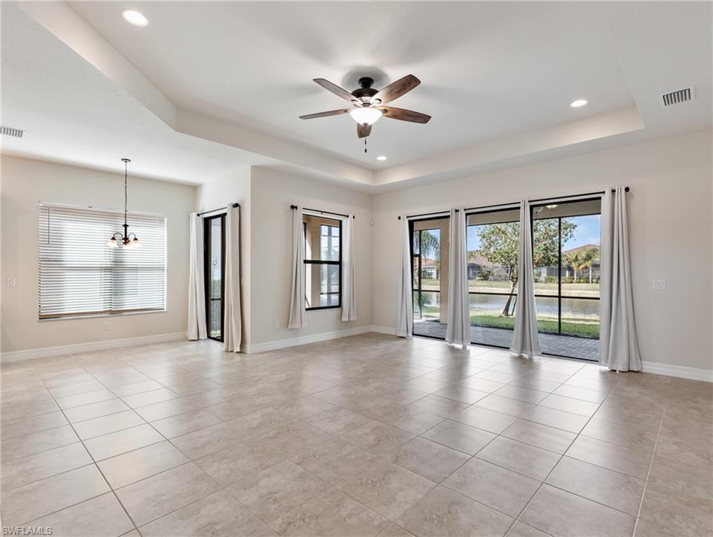 This two-story, four-bedroom, four-bath home in the gated Community of Marina Bay offers beautiful lakefront views and breathtaking sunsets. Boasting nearly 3,000 square feet of living space, tile flooring runs through the main living areas while the bedrooms are carpeted. Upon entering, high ceilings fill the home with natural light. The oversized great room provides an ideal spot for families to gather and make memories. The spacious open kitchen features a large counter bar, granite countertops, stainless steel appliances, and connects to an informal dining area, offering plenty of options for gourmet cooking. All bedrooms, including the primary suite, are conveniently located on the first floor. Upstairs, you'll find a large open space perfect for a TV media room, along with an additional bathroom, making it a great retreat for the family. Just moments away, the amenity center includes tennis, pickleball, basketball, fitness facilities, a kids' play area, a lap pool, and a community pool for relaxation. Welcome home!