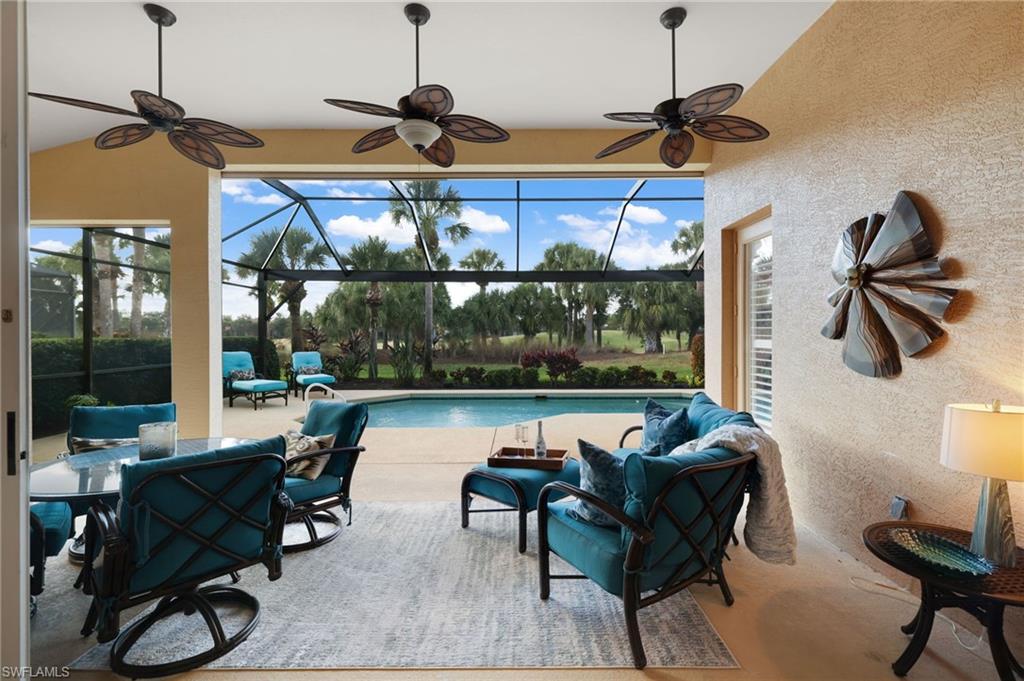 Welcome to this beautifully updated 2-bedroom plus den home, where coastal comfort meets everyday ease. Step inside and youu2019re greeted by an open, light-filled floor plan that feels both spacious and inviting. Soft natural tones, modern finishes, and thoughtful updates create a space thatu2019s elegant yet relaxed, one that feels good to live in.The kitchen, dining, and living areas flow together seamlessly, perfect for quiet mornings or easy evenings with friends. Every improvement, from the high-quality finishes to the full hurricane protection, was chosen with care to bring peace of mind and lasting comfort.Step outside to a private outdoor retreat overlooking the golf course. The pool sparkles in the sun, surrounded by a large patio designed for unwinding, entertaining, or just watching the colors change over the course of the day.Set within the award-winning Miromar Lakes Beach & Golf Club, this home connects you to a vibrant, active community. Enjoy three miles of white-sand beaches, a 700-acre freshwater lake for boating and watersports, and world-class amenities including championship golf, tennis, pickleball, bocce, fitness, fine dining, and a full-service spa.This home blends warmth and sophistication with the rhythm of resort living, offering comfort, style, and a quiet sense of belonging in one of Southwest Floridau2019s most celebrated communities.
