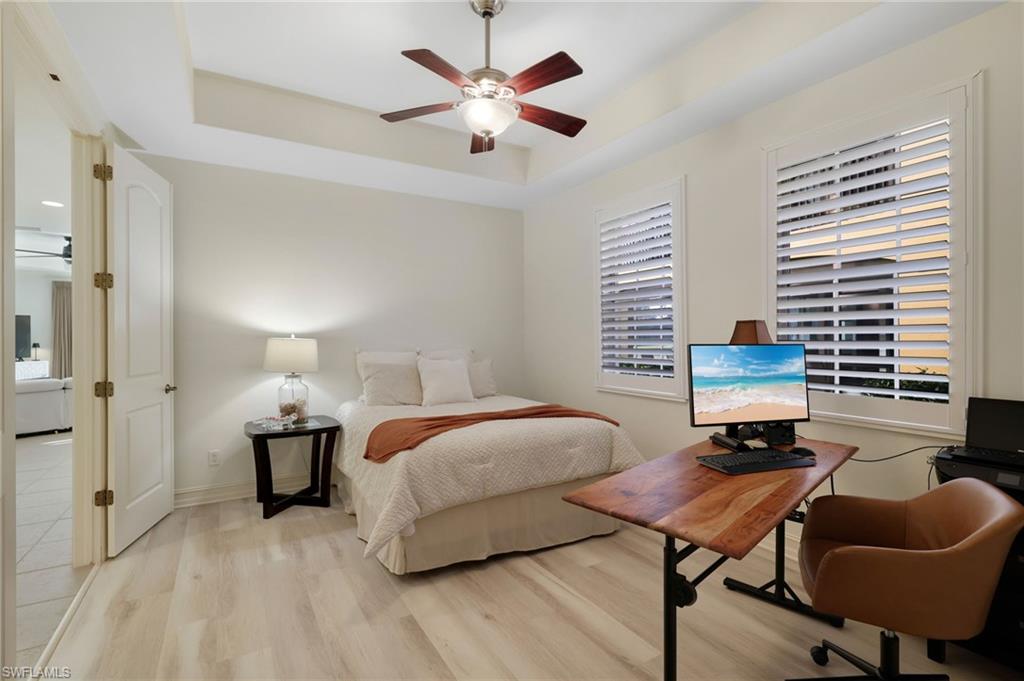 Welcome to this beautifully positioned first-floor Vivaldi residence in Miromar Lakes Beach & Golf Club, offering effortless lakefront living with desirable southern exposure and sweeping long lake views. Bathed in natural light throughout the day, this two-bedroom plus den condominium captures stunning sunsets and invites you to enjoy peaceful evening walks along the beach just steps from your door.The thoughtfully designed floor plan offers an open and inviting layout, ideal for both everyday living and entertaining. The spacious kitchen flows seamlessly into the living and dining areas, all oriented toward the water views. A versatile den provides the perfect space for a home office, media room, or additional guest accommodations.One of the most special features of this residence is the expansive wraparound lanai, complete with hurricane shutters for peace of mind and an outdoor kitchen that makes alfresco dining and sunset gatherings effortless. Whether hosting friends or enjoying a quiet morning coffee, the outdoor living space truly extends the home.Located directly across from the Vivaldi community pool, youu2019ll enjoy the convenience of resort-style relaxation just steps away, while still savoring the privacy of your own lakeside retreat.Beyond your front door, the award-winning community offers an extraordinary array of amenities designed to elevate everyday living. Residents enjoy a private white sand beach stretching along 700 acres of freshwater lakes, a full-service marina, boating, paddleboarding, and kayaking. The elegant clubhouse features waterfront dining, indoor and outdoor bars, and a vibrant social calendar filled with events and activities. Fitness enthusiasts appreciate the state-of-the-art fitness center, full-service spa, Har-Tru tennis courts, pickleball, and bocce. The championship golf course provides an exceptional experience for players of all levels, while scenic walking and biking paths wind throughout the community.With beach access nearby, panoramic water views, and world-class amenities at your fingertips, this Vivaldi residence offers the perfect blend of luxury, leisure, and the effortless coastal lifestyle that makes Miromar Lakes so special.