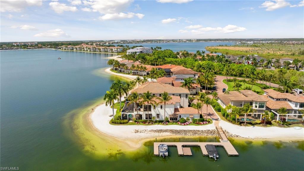 One or more photo(s) has been virtually staged, AI generated or rendered. One or more photo(s) has been virtually staged, AI generated or rendered. Experience elevated waterfront living in this spectacular corner-lot residence in Costa Amalfi at Miromar Lakes. Showcasing stunning wrap-around views of the lake and sandy beach, this home is perfectly positioned to capture breathtaking sunsets with its coveted southwest exposure. The spacious floor plan features a luxurious first-floor primary suite, an open-concept kitchen and living area with high-end finishes, a sophisticated wet bar, and a private guest suite with en-suite bath. Upstairs, accessible by elevator, youu2019ll find two additional en-suite bedrooms, a versatile loft, and an expansive balcony overlooking the water. Designed for both comfort and entertaining, this home offers the best of indoor-outdoor Florida living. Located within the award-winning Miromar Lakes Beach & Golf Club, residents enjoy 700 acres of freshwater lakes, a 10,000-square-foot zero-entry infinity pool, three miles of private white-sand beach, boating, tennis, pickleball, spa, fitness center, and waterfront dining. A rare opportunity to own a stunning piece of paradise in one of Southwest Floridau2019s most sought-after luxury communities.