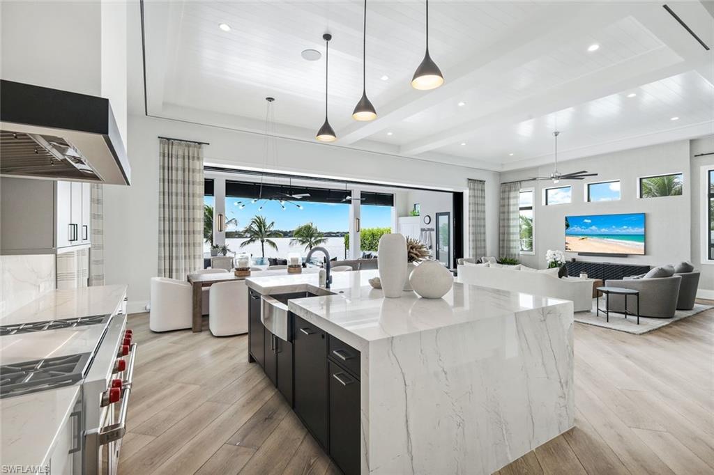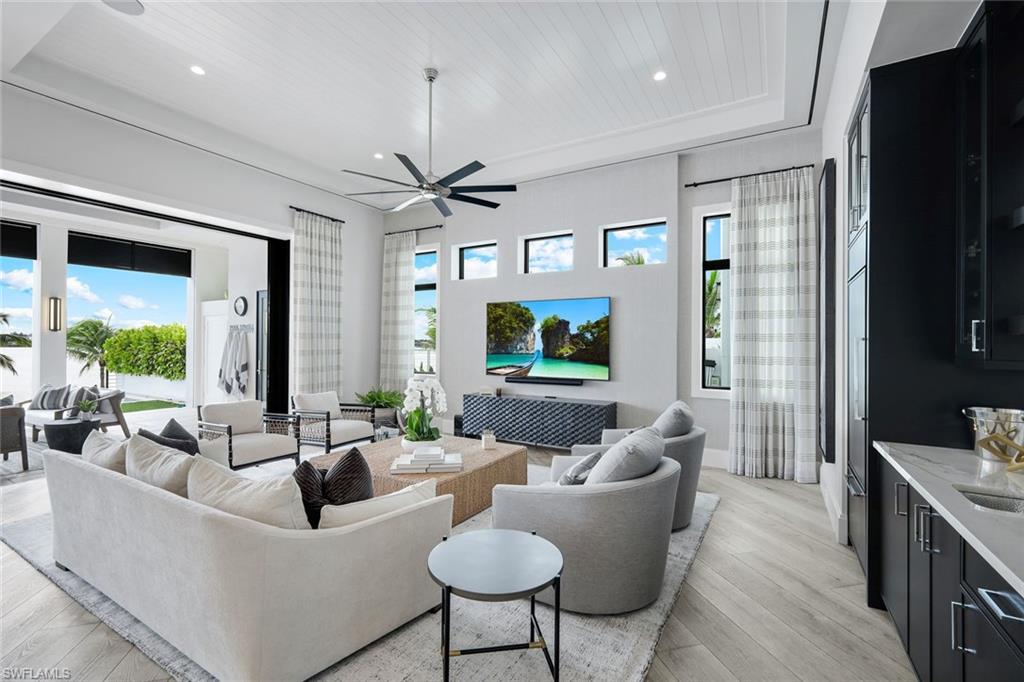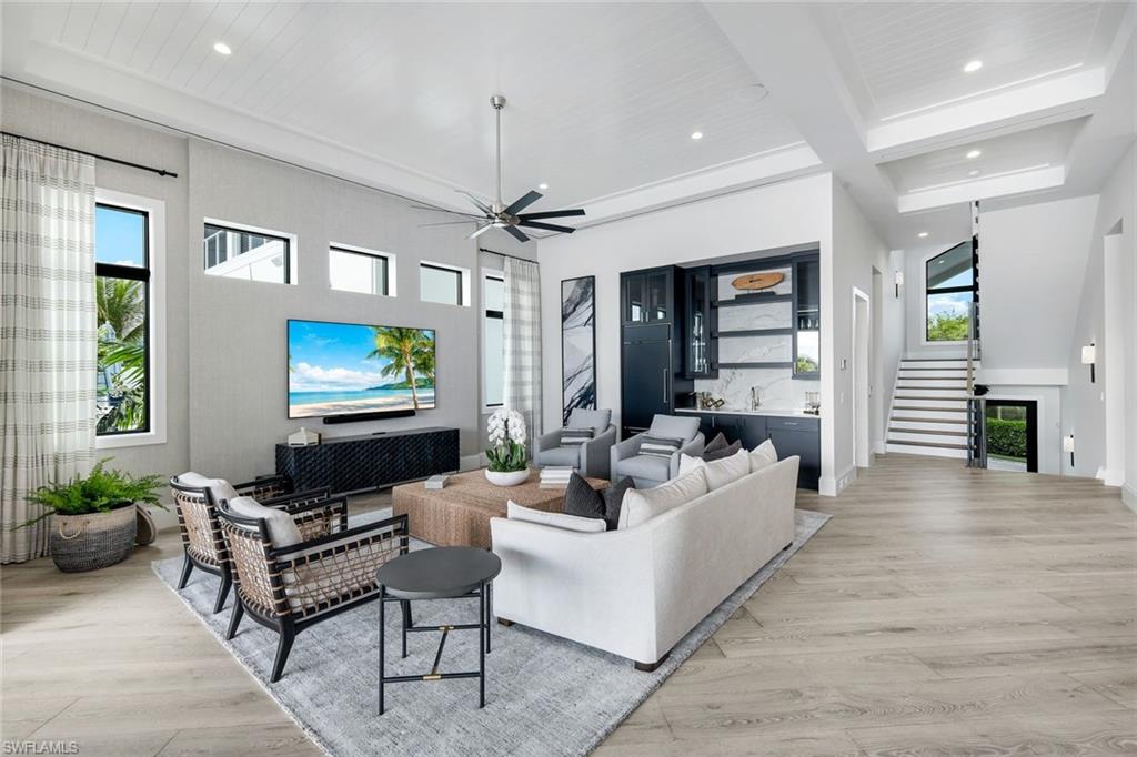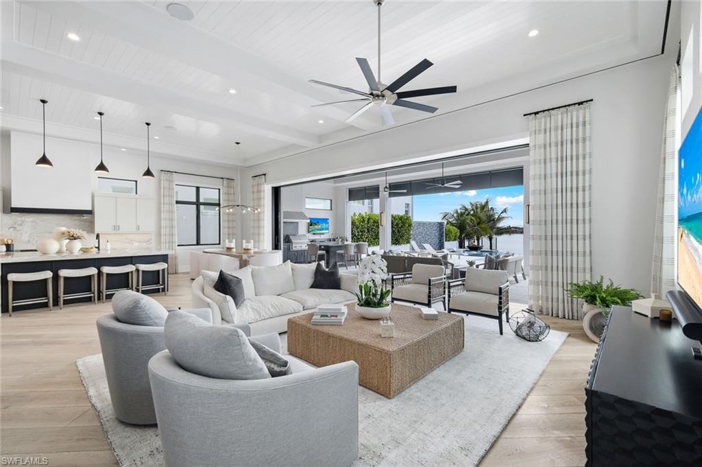 Experience the pinnacle of modern luxury on this extraordinary beachfront, award winning lakefront estate within the exclusive Sardinia enclave at Miromar Lakes Beach & Golf Club. Boasting coveted southern exposure and 4,966 square feet of impeccably designed living space, this 4-bedroom residence with two private dens, 4 full baths, and 2 half baths offers refined contemporary elegance with breathtaking water views from nearly every room.Curated by Theory Design, the interiors are a masterclass in sophistication, featuring soaring ceilings, bespoke designer finishes, and seamless indoor-outdoor flow. The open-concept great room is anchored by a gourmet chefu2019s kitchen outfitted with top-tier appliances, sleek custom cabinetry, and an expansive islandu2014perfect for both everyday living and elevated entertaining. The homeu2019s primary living area is thoughtfully positioned on the upper level, creating a serene private retreat complete with tranquil lake views and a spa-inspired primary bath. Two beautifully appointed dens provide flexible space for a home office, media lounge, or additional guest accommodations.The outdoor living experience is nothing short of spectacular. Enjoy a private white-sand beach and boat dock, along with a first-floor custom infinity-edge pool and spa enhanced by a dramatic water wall and fire bowl feature. Multiple lounging and dining areas overlook shimmering lake views, creating a striking yet tranquil backdrop for entertaining or unwinding in complete privacy.Additional highlights include a 4-car garage, thoughtful architectural details throughout, and effortless access to Miromar Lakesu2019 world-renowned amenities. Residents of Sardinia enjoy 700 acres of freshwater lakes, three miles of private beaches, championship golf, tennis and pickleball courts, a full-service spa and fitness center, exceptional dining, and a vibrant social lifestyleu2014set within one of Southwest Floridau2019s most coveted luxury communities.