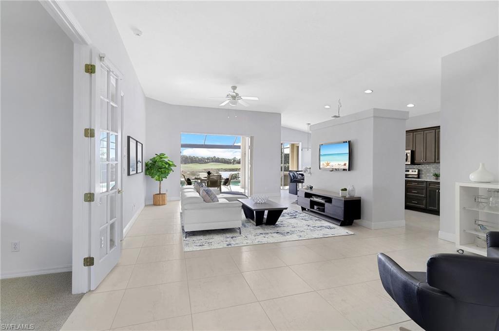 Exceptional opportunities like this are rarely available in Miromar Lakes. This beautifully updated property offers an outstanding combination of location, views, upgrades, and meticulous maintenance.Perfectly positioned to capture expansive long-lake and 11th fairway views of the exclusive Miromar Lakes Golf Club, the homeu2019s open floor plan creates a seamless connection between indoor living and breathtaking outdoor scenery. A picture-window lanai screen beautifully frames the landscape, creating uninterrupted, seamless water and golf course views.Thoughtfully renovated, the residence features wood soft-close kitchen cabinetry, a pantry closet, stainless steel appliances, granite countertops, and stunning 24u201d tile flooring throughout the main living areas. Bathrooms have been tastefully updated, enhancing both style and comfort.Major improvements provide peace of mind, including interior and exterior paint, a newer Trane 5-cycle A/C system, lanai resurfacing, and a NEW tile roof with a 10-year warranty effective February 1, 2023, along with newer gutters and pool pump.The spacious primary suite features a custom walk-in closet and a desirable pool bath u2014 a rare offering at this price point. Natural light fills the home, creating a bright, cheerful atmosphere where lights are rarely needed during the day.Enjoy life in the #1 ranked community in the USA by the NAHB u2014 Miromar Lakes u2014 a one-of-a-kind resort lifestyle featuring miles of white-sand beaches set along 700 acres of freshwater lakes, with boat docks available for rent. Residents enjoy boating, skiing, tubing, fishing, and unforgettable sunset cruises.All this, just 10 minutes from the airport, with easy access to three major shopping destinations, over 300 stores, and countless dining options.