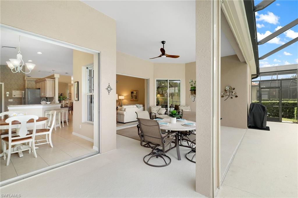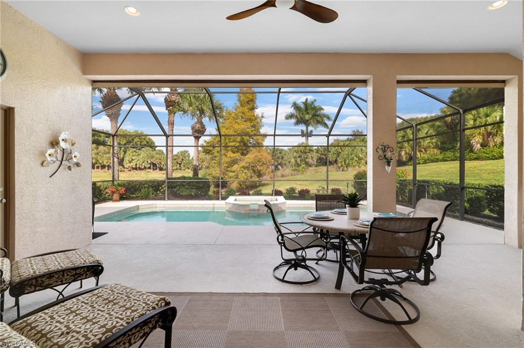 Nestled within the Tivoli neighborhood of Miromar Lakes, this beautifully maintained single family home offers an inviting blend of comfort, style, and resort inspired living. Thoughtfully designed, the home features two bedrooms plus a versatile den and two bathrooms, creating a flexible layout ideal for everyday living or hosting guests. Plantation shutters throughout the home add timeless character while enhancing privacy and natural light.The updated kitchen serves as the heart of the home and is complemented by new appliances, generous cabinetry, and a seamless connection to the main living areas. Bathrooms and the laundry room have also been tastefully updated, with the laundry room offering extra storage for added convenience. The homeu2019s easy flow and well proportioned spaces create a welcoming atmosphere that feels both comfortable and refined.Step outside to a very private back lanai that feels like a personal retreat. A sparkling pool and spa are paired with an outdoor kitchen, making this space perfect for relaxing, entertaining, or enjoying quiet evenings surrounded by lush privacy. An expansive driveway, along with a large side and backyard, provides additional outdoor space rarely found and enhances the homeu2019s overall appeal. Storm Smart hurricane shutters offer added peace of mind, blending function with thoughtful design.Located within the award winning Miromar Lakes Beach and Golf Club, residents enjoy access to world class amenities including a private freshwater beach, boating and water sports, championship golf, tennis and pickleball, a full service spa and fitness center, and multiple dining venues. This Tivoli residence presents a wonderful opportunity to enjoy the best of Southwest Florida living in a refined yet relaxed setting.