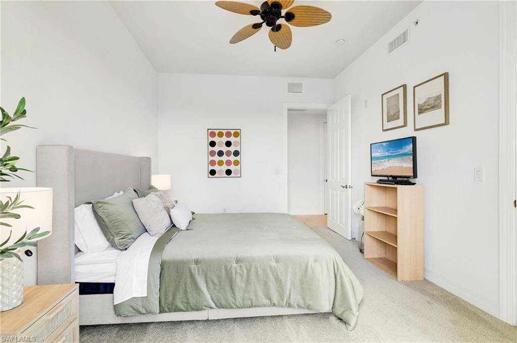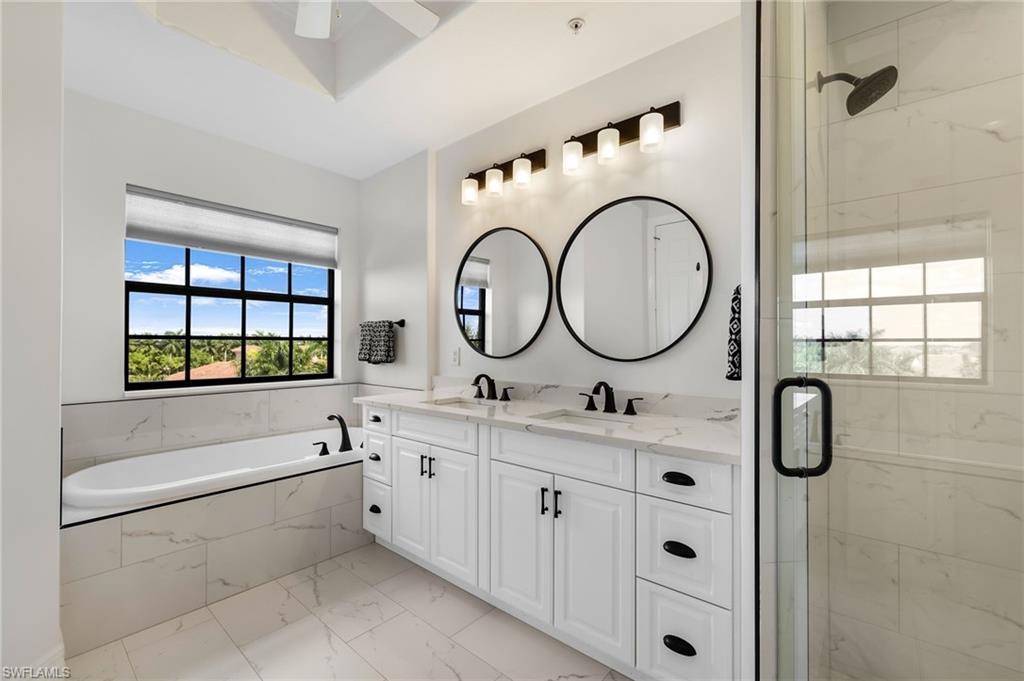 INCREDIBLE VALUE! BOAT DOCK INCLUDED! Live the dream in Miromar Lakes with this beautiful, turnkey lake front condo. This elegant 3-bedroom condo in the Mirasol neighborhood of Miromar Lakes offers luxurious living with updated features and high-end finishes. Upon entering the condo, you are greeted by an open and airy living space, enhanced by large windows that fill the interior with natural light. The eat-in kitchen is a chef's dream, boasting stainless steel appliances, beautiful cabinetry that provides ample storage, and a large pantry. The breakfast bar serves as a focal point, offering additional seating and a casual dining option. The three bedrooms are generously sized, each providing a serene retreat. The primary suite is particularly impressive, featuring large windows and a sliding glass door that offers views of the surrounding greenery or lake. The primary bathroom has been completely updated with modern finishes, including a double vanity with quartz countertops, a spacious shower with frameless glass doors, and a luxurious soaking tub. Elegant tile work, contemporary lighting, and high-end fixtures complete the look, creating a spa-like atmosphere. The additional bathrooms have also been fully renovated, featuring similar high-end materials and design elements, ensuring that every space in the home reflects quality and attention to detail. The condo also includes private balconies and a lanai, where you can enjoy the tranquil views of Miromar Lakes, whether it be the shimmering lake or lush landscaping. This outdoor space is perfect for morning coffee or evening relaxation. This 3-bedroom condo in Mirasol at Miromar Lakes comes with the added luxury of a private boat dock, enhancing the waterfront lifestyle that the community is known for. The boat dock is conveniently located just outside your condo, offering easy and direct access to Miromaru2019s 700-acre freshwater lake, ideal for boating, fishing, and water sports. Living in Mirasol at Miromar Lakes means enjoying resort-style amenities, including a championship golf course, a luxurious beach club, tennis courts, and miles of private beaches. The community also offers a fitness center, spa, and multiple dining options, ensuring that every day feels like a vacation. This condo is a perfect blend of modern luxury and comfort, ideal for those looking to enjoy the best of Florida living in one of the most sought-after communities.
