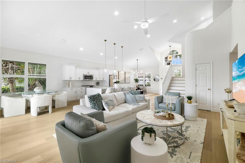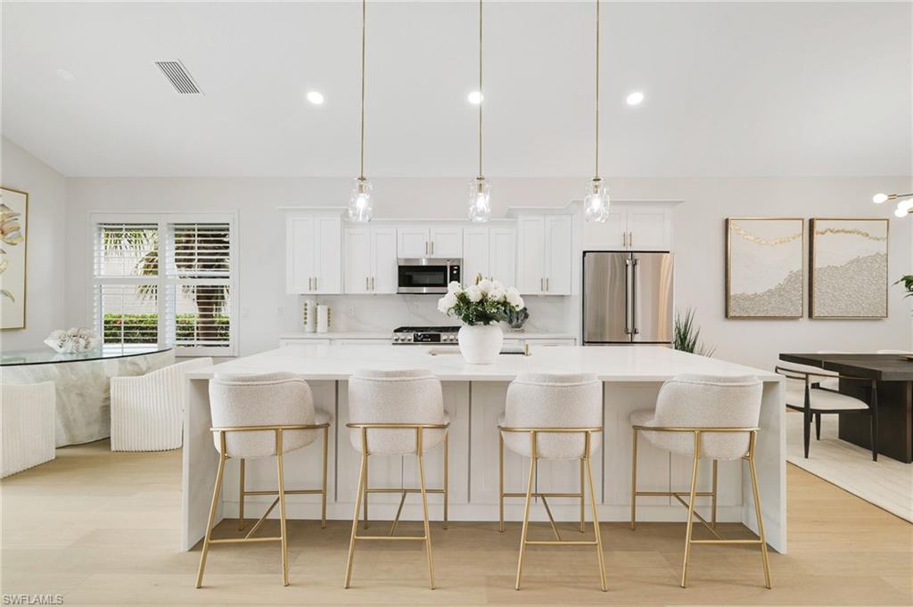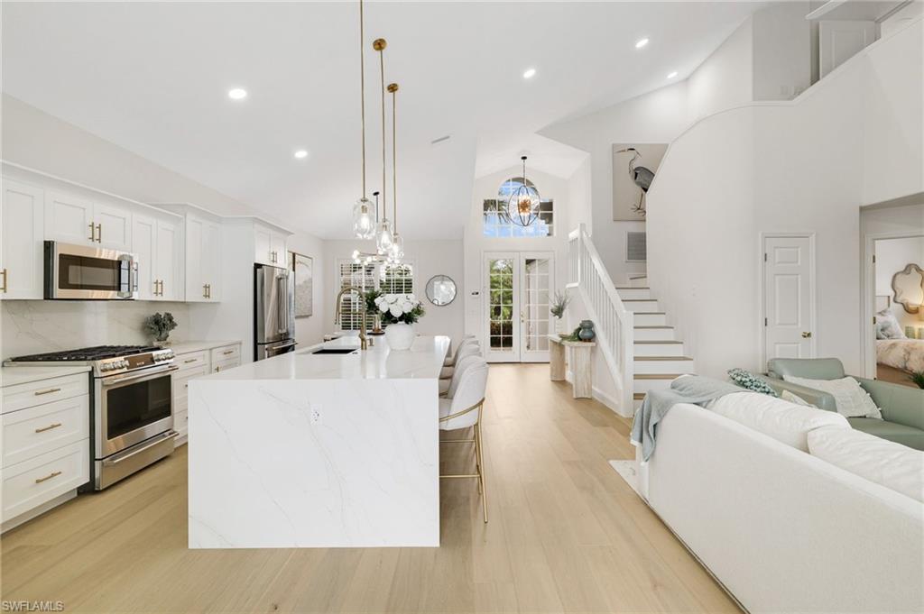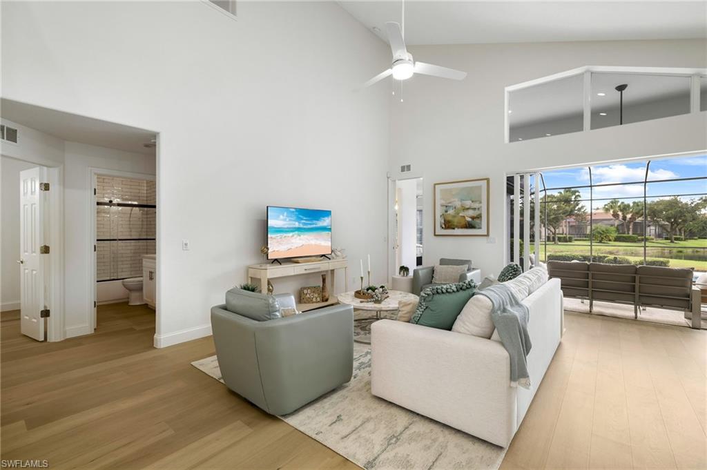 Coastal Contemporary Luxury in Miromar Lakes. Showcasing a brand new roof and a complete top-to-bottom renovation, this stunning Coastal Contemporary home in the award-winning Miromar Lakes Beach & Golf Club is truly move-in ready. This 4-bedroom, 3-bath residence combines timeless sophistication with modern coastal design, offering the perfect blend of luxury, comfort, and peace of mind.Inside, the open-concept layout features all new wood flooring, a gourmet kitchen with waterfall quartz countertops, custom cabinetry, and premium appliances. The spacious living and dining areas flow effortlessly together, creating a bright and inviting atmosphere ideal for entertaining. The primary suite offers tranquil lake views and a spa-inspired bath, while guest rooms provide comfort and flexibility for family and visitors.Outdoors, the southern exposure lanai invites you to enjoy the Florida sunshine with a newly refinished pool and a designer outdoor kitchen, perfect for dining and relaxing year-round.Residents of Miromar Lakes enjoy 700 acres of freshwater lakes, three miles of white sand beaches, boating, tennis, pickleball, championship golf, a European-style spa, and award-winning dining. This exceptional home captures the essence of resort living where Coastal Contemporary elegance meets everyday luxury.