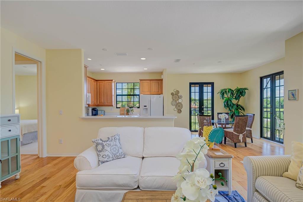 PRICE REDUCED! On this Beautiful and Bright SAN-BENITO built 2014. The jewel of Paseo, and an absolute must see! BONUS, this corner unit is also located on a QUAD, and has Big, unobstructed, West and North facing views of 4 fishable lakes from all the windows. Just a short walk to all the Amenities that this 9 Time AWARD WINNING community has to offer. This condo offers the convenience of ONE level of living, with luxury upgrades, like solid wood flooring in the main living areas, Quartz counter tops, Solid wood cabinets, and an oversized 1 car garage with room for storage, or perhaps your custom Golf Cart! The entryway to the Condo provides a seating area with WEST facing fountain views with a brief foyer that either passes through to the garage with quick access to the QUAD lifestyle pool; or ushers you up the stairs to your Vacation style retreat. This split plan design, with Primary Bedroom off to the right with separate indoor laundry room, or the Guest Suite on the left with guest bath, linen closet, and sliding `pocket door` for added privacy for your visiting guests. The main living area is a bright open concept, with immediate views to the outside. No other buildings around to crowd your view. Open kitchen with a breakfast bar and dining area straddled by TWO `Romeo and Juliet balconies` overlooking the lakes. A large, covered balcony/Lanai with outdoor seating and fan to enjoy the Florida sunsets, or passersby on their way to enjoy the Village Center just steps away, with sports complex, resort style pools, theater, Pub, bistro, Fitness center and more. This property is being offered for sale TURNKEY by the original owners who have lightly used and loved this unit since it was handpicked from the builder. Decorated (see exceptions) with top quality Tommy Bahama furnishings, coastal decor and colors. This condo is ready for New Owners and truly is a must see! No other unit compares to the light and brightness that this property has to offer. Quad 3 is finally under Renovation and completion gets closer every day. With Brand new Tile roof, new impact doors and windows, new exterior stucco and fresh paint are guaranteed to make this property shine like new. Take advantage of the lower sales prices this construction eye sore has caused and be ready for that equity boom when it's all done! Vacation rentals in Paseo can go from $5500-$7000 a month in Season, but Guests are always waiting to come and enjoy what PASEO has to offer and always DELIVERS!