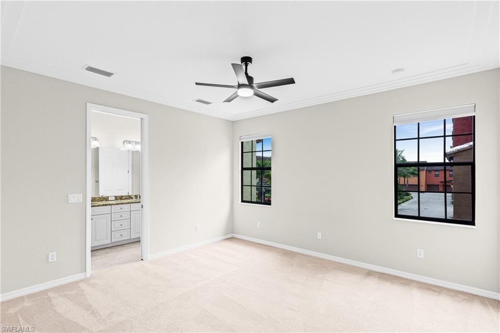 Embrace an exceptional lifestyle in the Santa Isabella model at Paseo, proudly recognized as `Community of the Year` for an astounding nine years running! Whether you desire a tranquil seasonal retreat or a vibrant full-time home, this elegant townhome delivers. This remarkable unit, previously a developer's office and only gently lived in for a few months, boasts a pristine interior. Soaring high ceilings and an abundance of natural light create an expansive and inviting ambiance throughout. On the first floor, a spacious great room with dramatic high ceilings flows seamlessly into an upgraded kitchen, complete with stainless steel appliances, granite countertops, and a practical breakfast bar. A convenient half bath is also located on this level. The second floor is a private haven, featuring an impressive master suite with a massive tile shower, double sinks, and a large walk-in closet. A comfortable guest suite, a dedicated laundry area, and a versatile office/loft with built-in desk and cabinets offer ultimate convenience. A 1-car garage provides additional storage and parking. Beyond the unit, discover the sought-after `quad` semi-private pool and courtyard, exclusively available to residents of the surrounding buildings. This charming outdoor space offers plenty of room to soak up the sun or relax in the shade, along with BBQ grills for delightful outdoor entertaining. For your peace of mind, all windows and doors are hurricane-rated for superior storm protection. This is also a golf cart friendly community. Paseo's unparalleled array of resort-style amenities includes a magnificent clubhouse, a spectacular resort pool complex with designated lap lanes and luxurious cabanas, a vibrant tiki bar, an inviting bistro, a cozy pub, a state-of-the-art movie theater, a well-stocked library, a pampering full-service spa, and a cutting-edge fitness center nicer than most gyms in town. Pursue an active lifestyle with lighted Har-Tru tennis courts, pickleball, basketball, bocce, and a new lighted bike path offering direct access to Lee Countyu2019s extensive trail system. Strategically located just minutes from RSW airport, Gulf Coast Town Center, FGCU, and the spring training grounds of both the Red Sox and Twins, Paseo offers the perfect fusion of accessibility, peaceful surroundings, and upscale living in one of Fort Myersu2019 most coveted communities. Come and experience the extraordinary lifestyle that defines Paseo. Visit mypaseo.life for in depth look at the amenities & community & schedule your showing today!